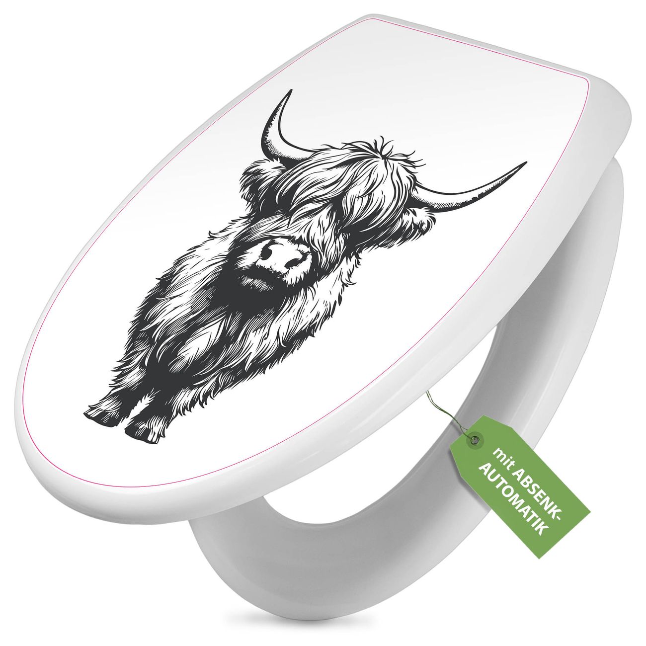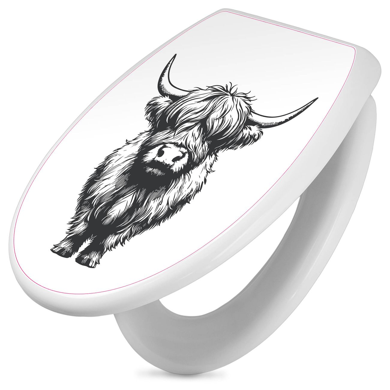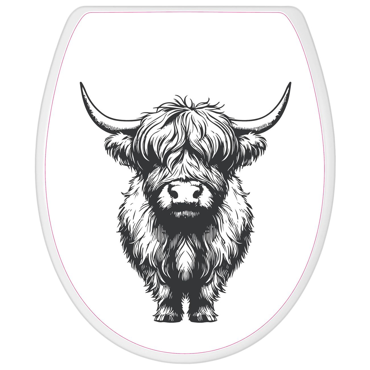 Toilettendeckel weiß mit Absenkautomatik Motiv Hochlandrind
