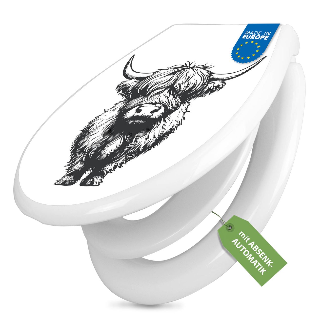 Toilettendeckel weiß mit Absenkautomatik Motiv Hochlandrind