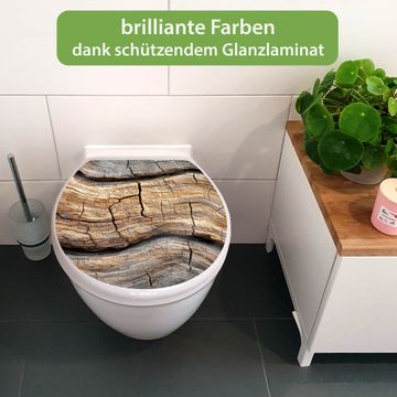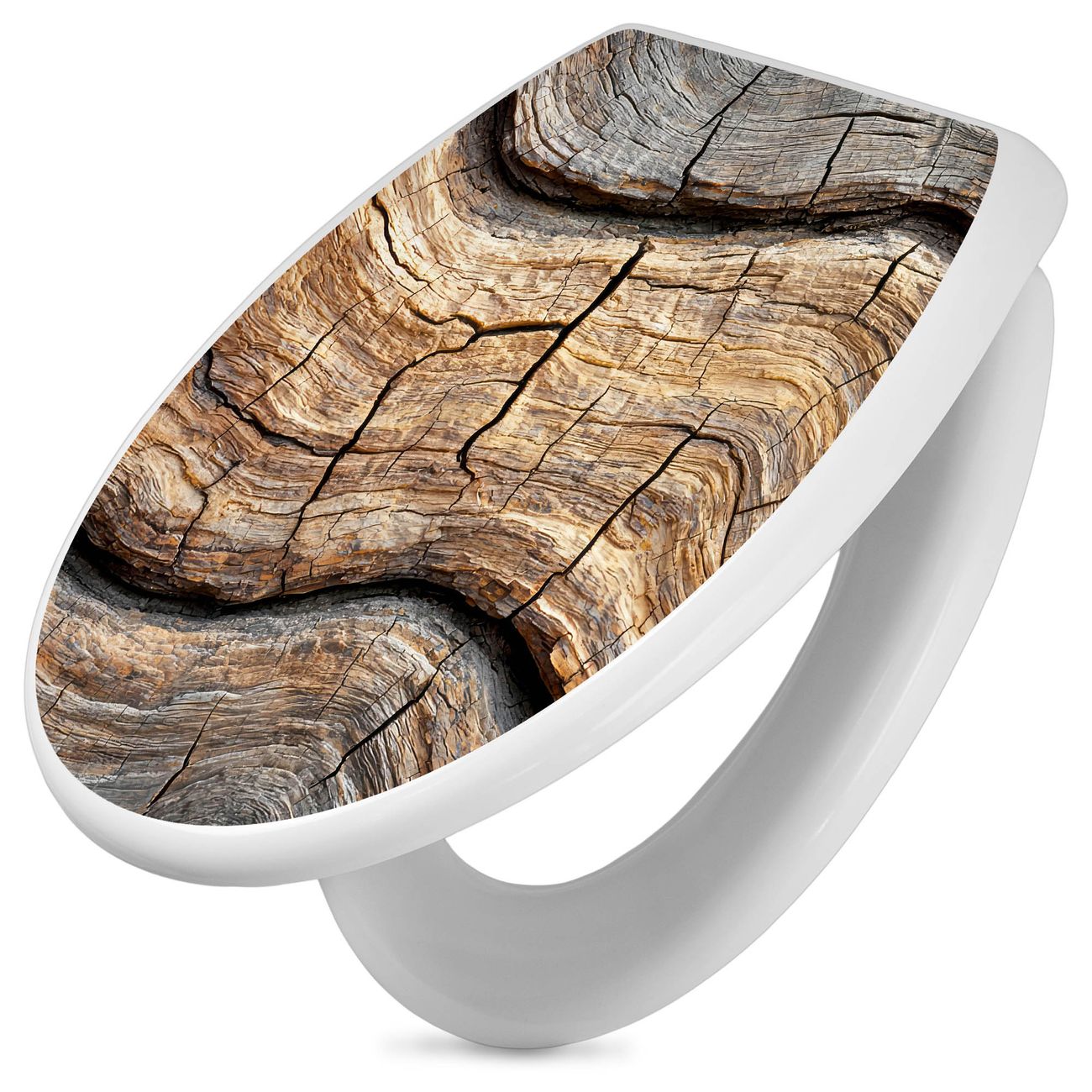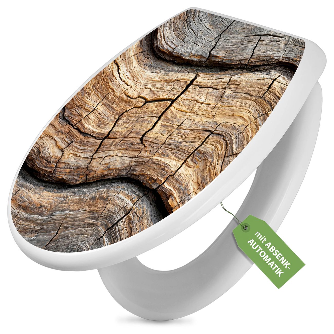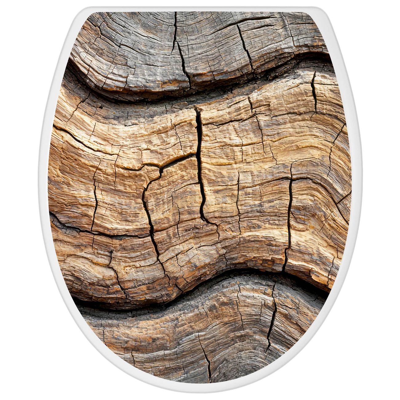 Toilettendeckel weiß mit Absenkautomatik Motiv Holz Gemasert Fluss Grau