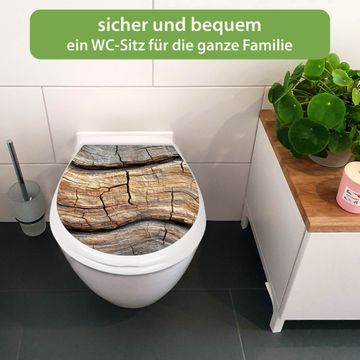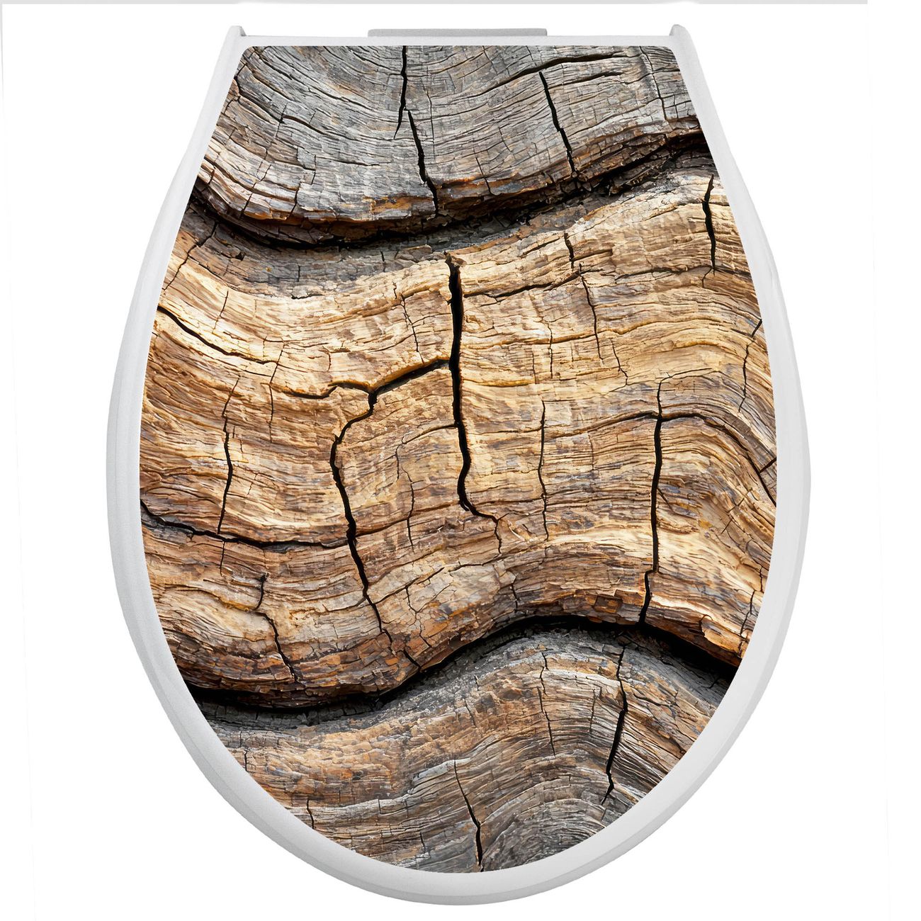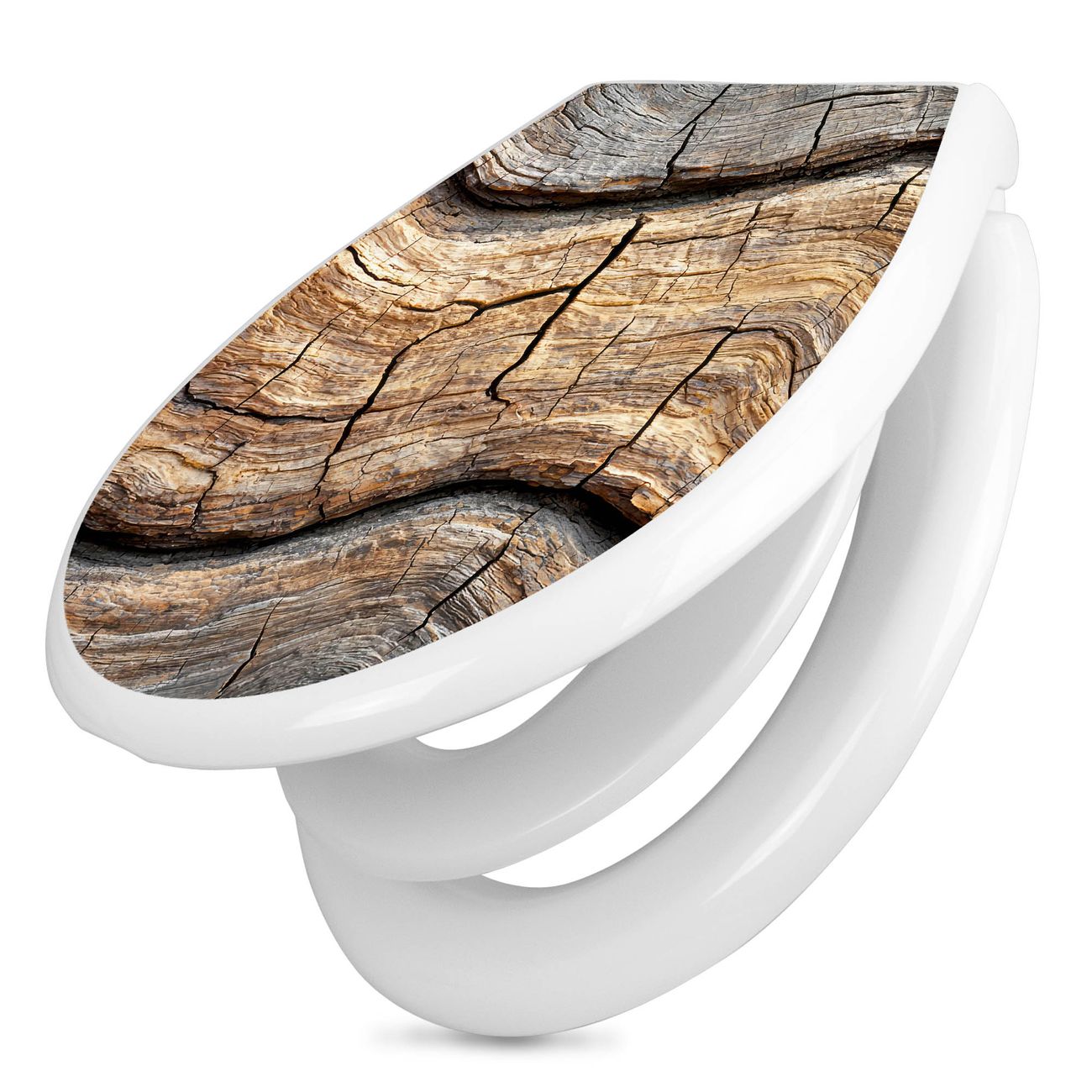 Toilettendeckel weiß mit Absenkautomatik Motiv Holz Gemasert Fluss Grau