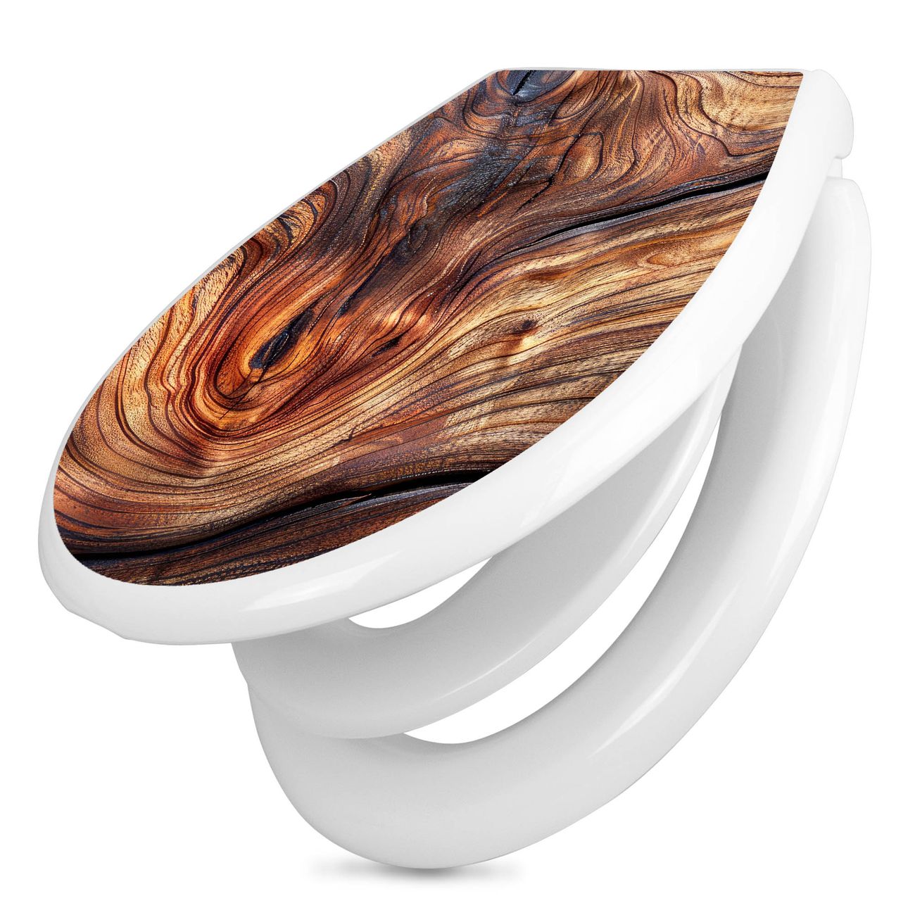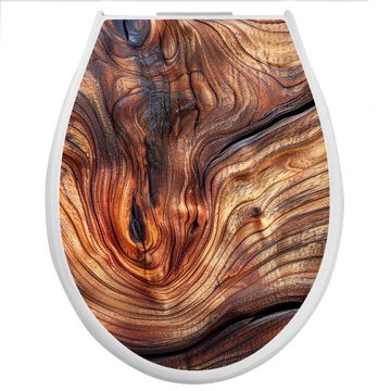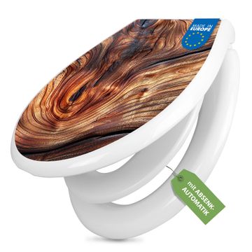 Toilettendeckel weiß mit Absenkautomatik Motiv Holz Gemasert Kurve