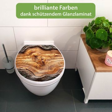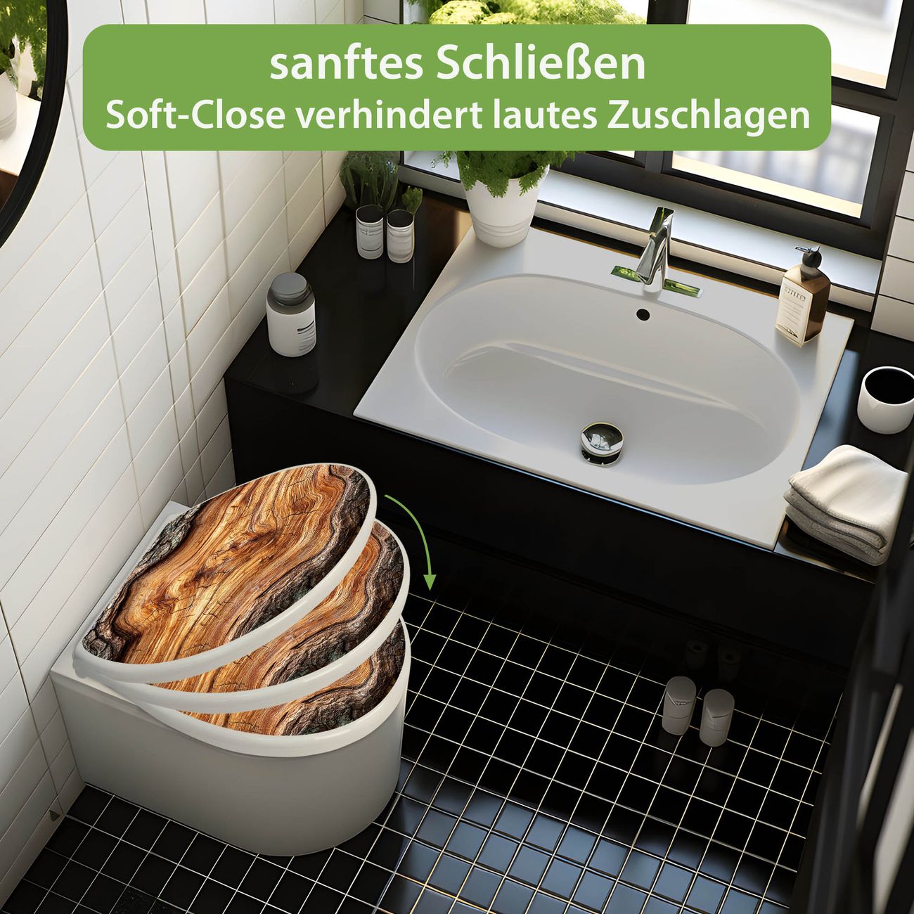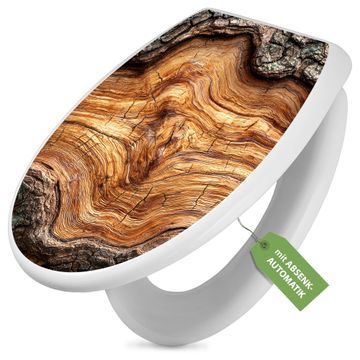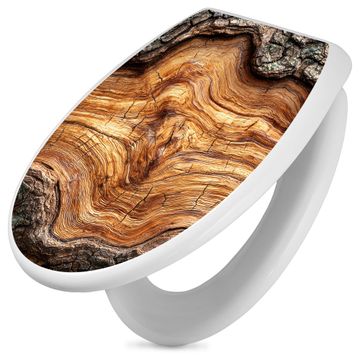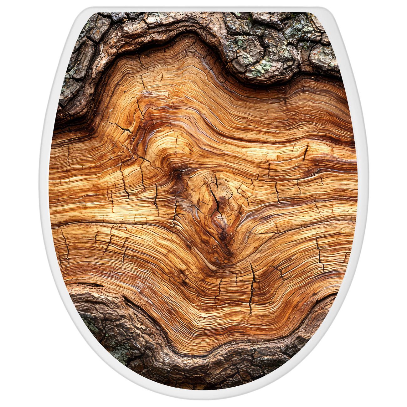 Toilettendeckel weiß mit Absenkautomatik Motiv Holz Gemasert mit Rinde