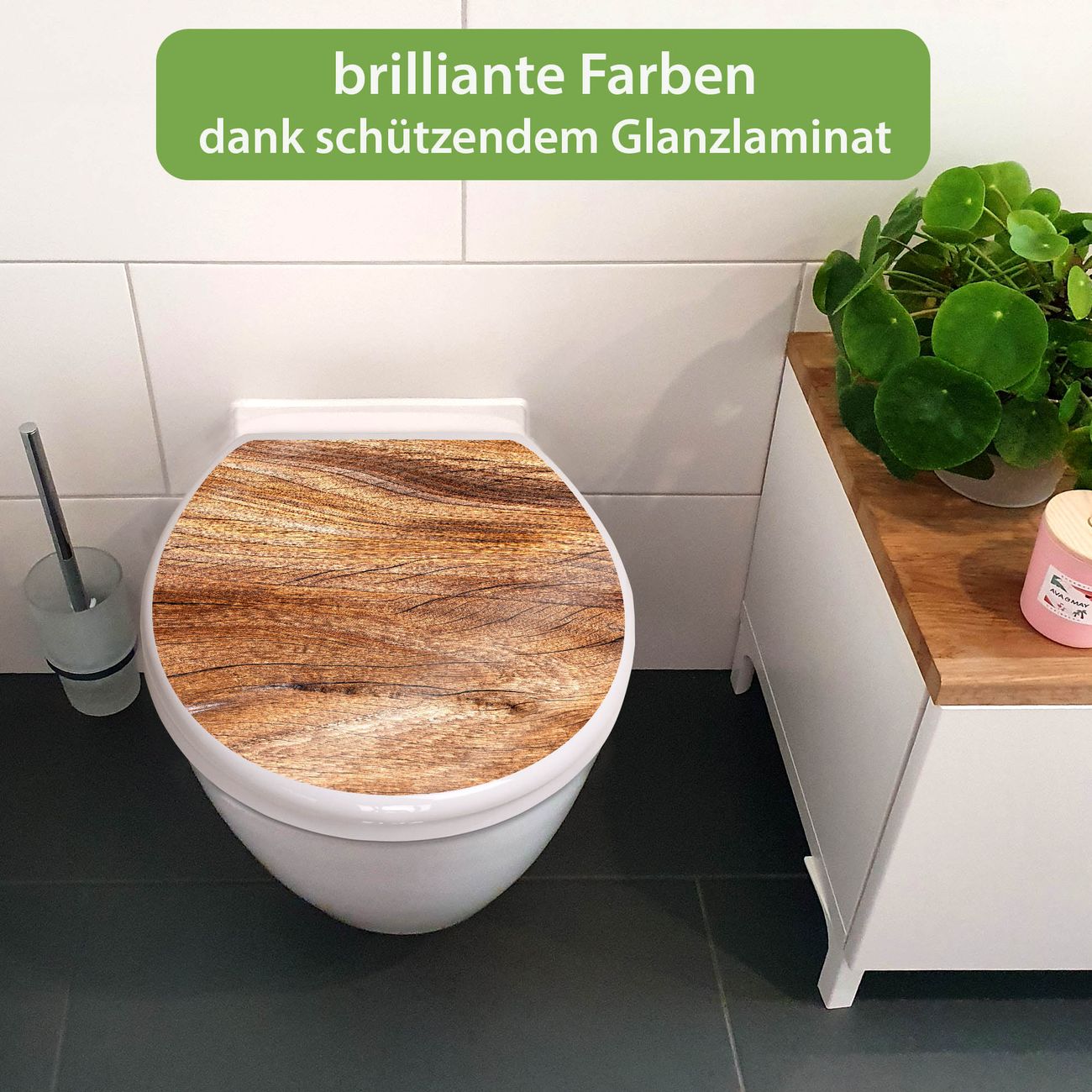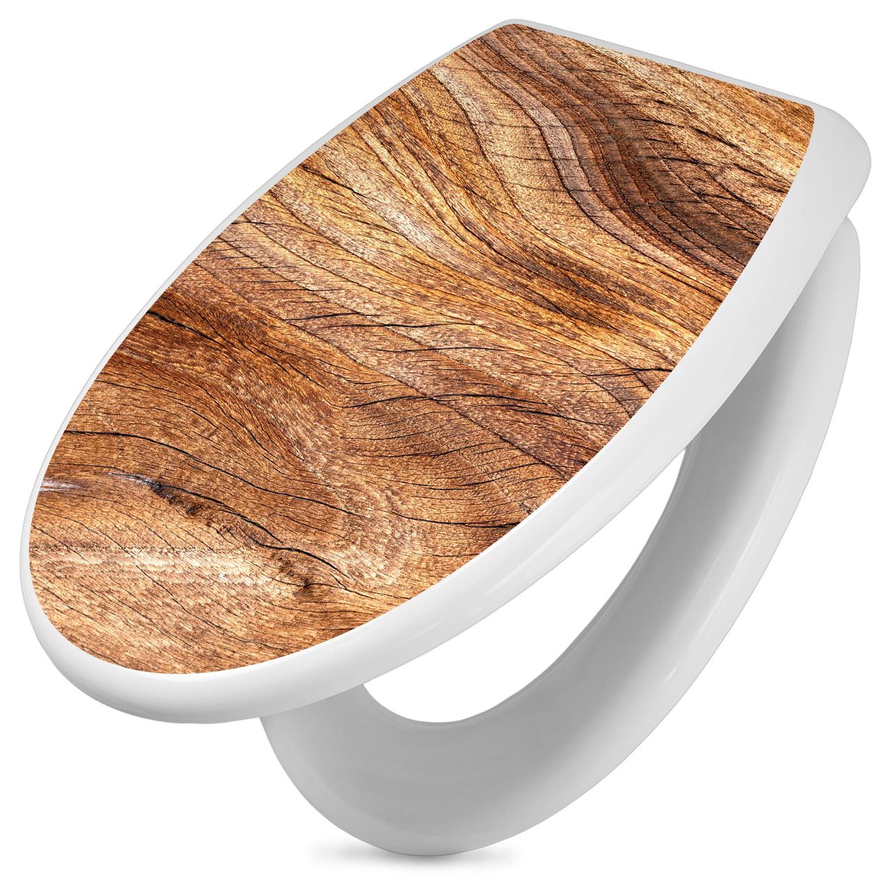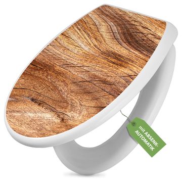 Toilettendeckel weiß mit Absenkautomatik Motiv Holz Struktur Fließend