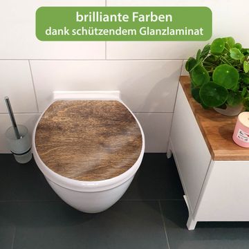 Toilettendeckel weiß mit Absenkautomatik Motiv Holz Struktur Warm