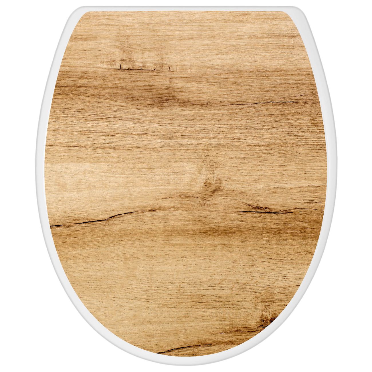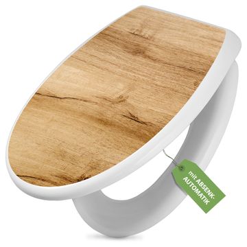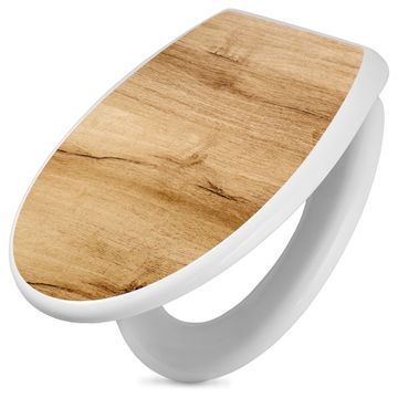 Toilettendeckel weiß mit Absenkautomatik Motiv Holzfurnier