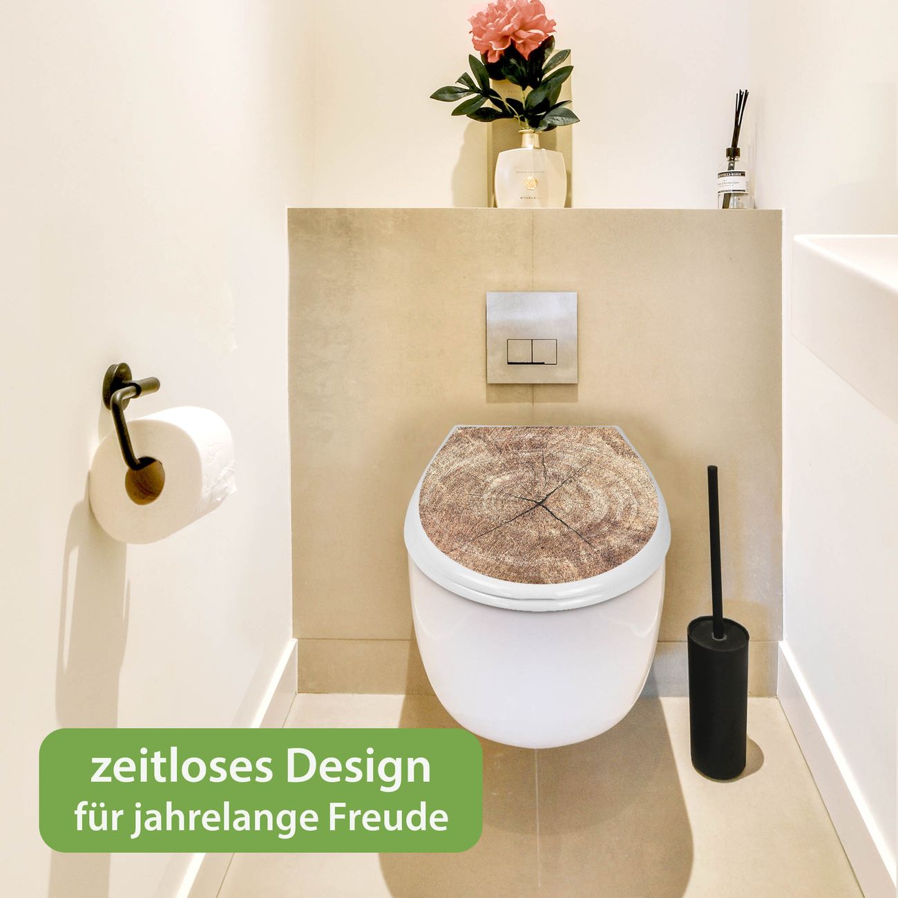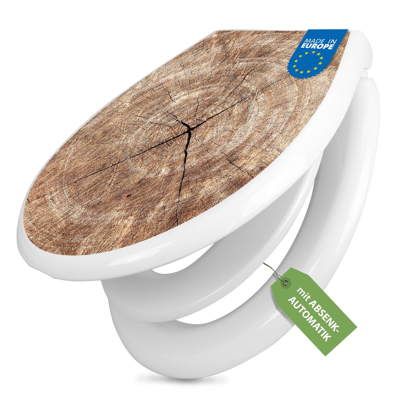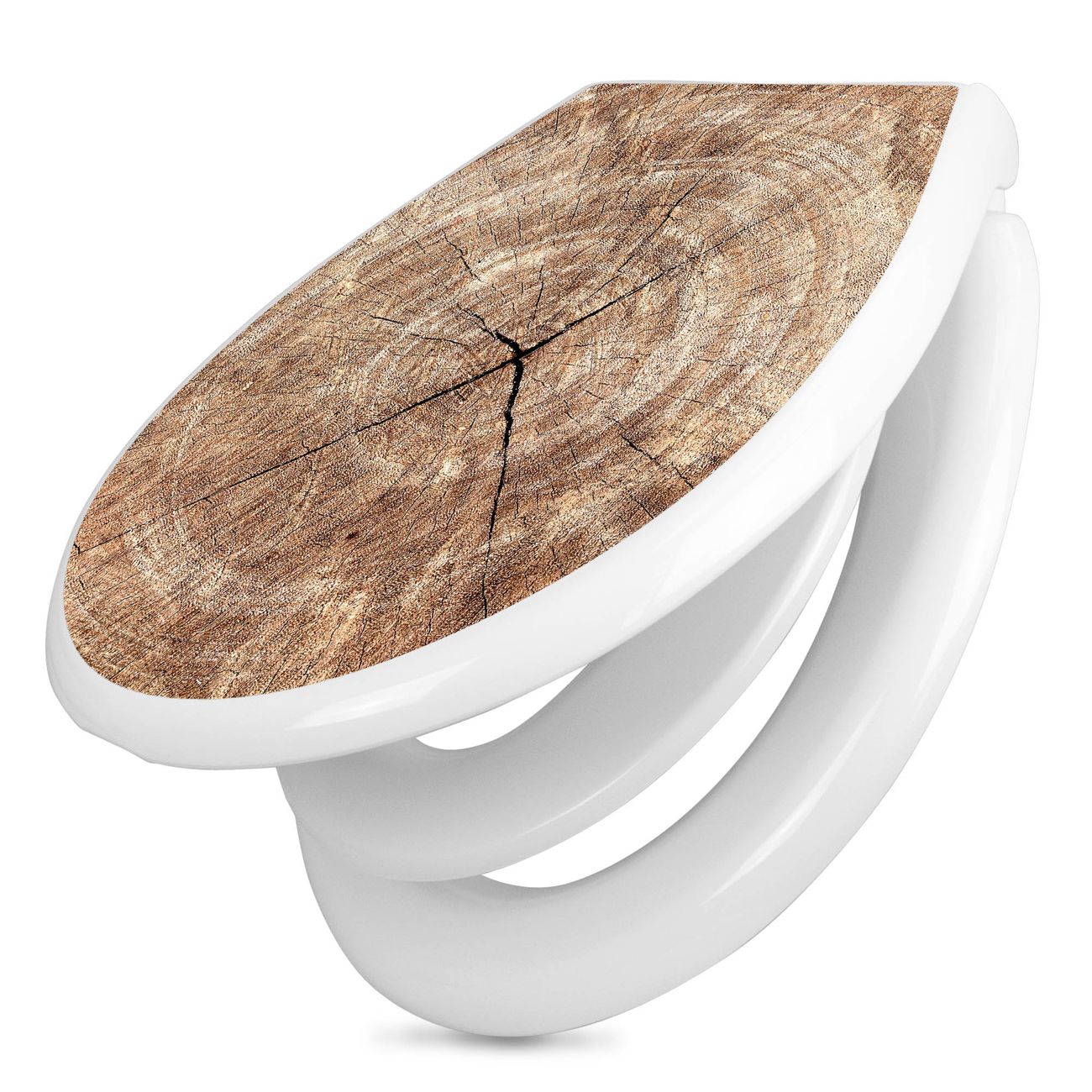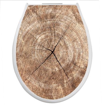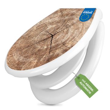 Toilettendeckel weiß mit Absenkautomatik Motiv Holzkreis mit Rissen