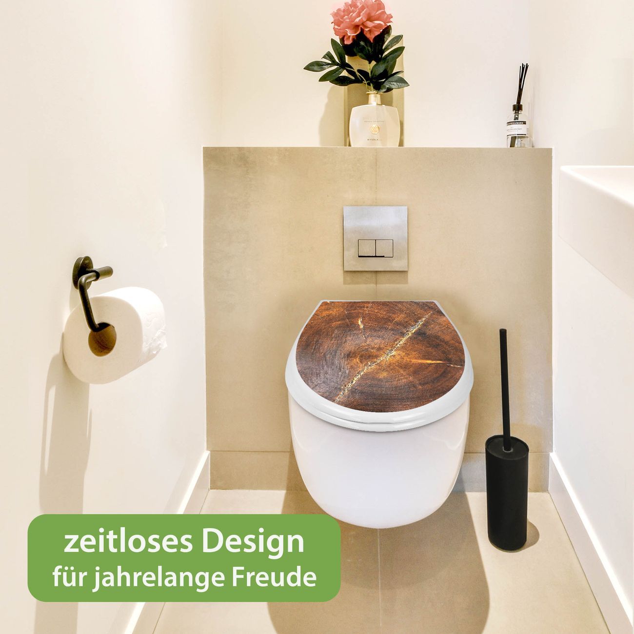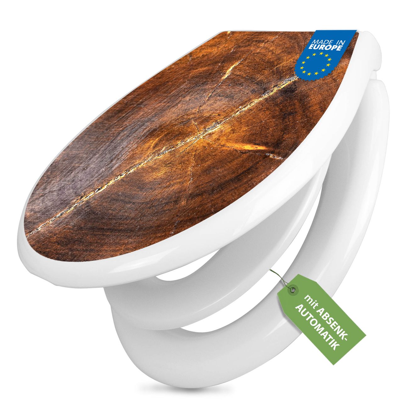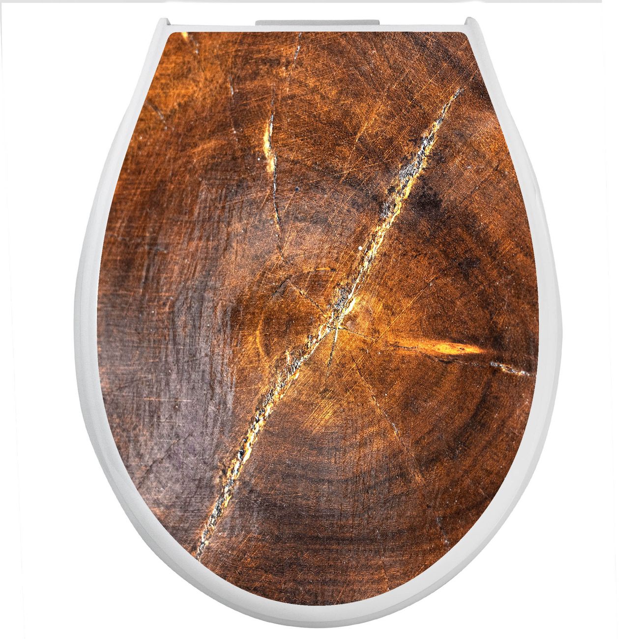 Toilettendeckel weiß mit Absenkautomatik Motiv Holzring mit Rissen
