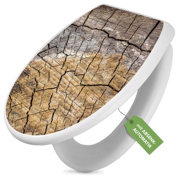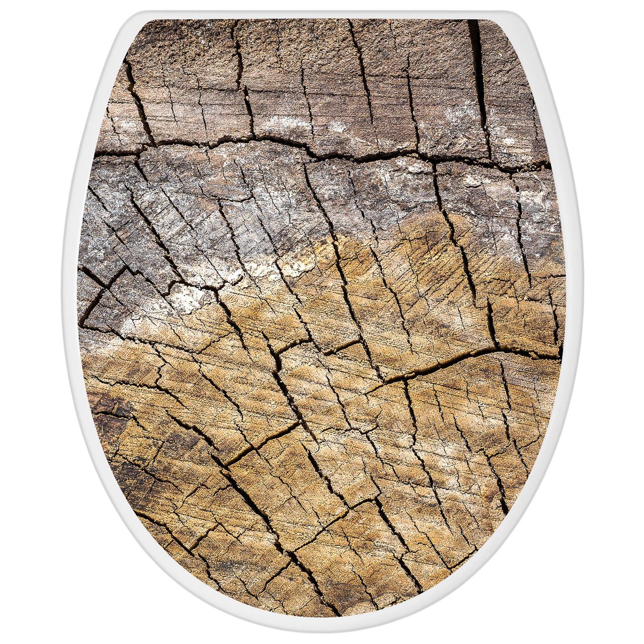 Toilettendeckel weiß mit Absenkautomatik Motiv Holzrisse