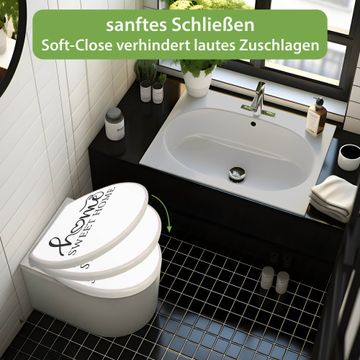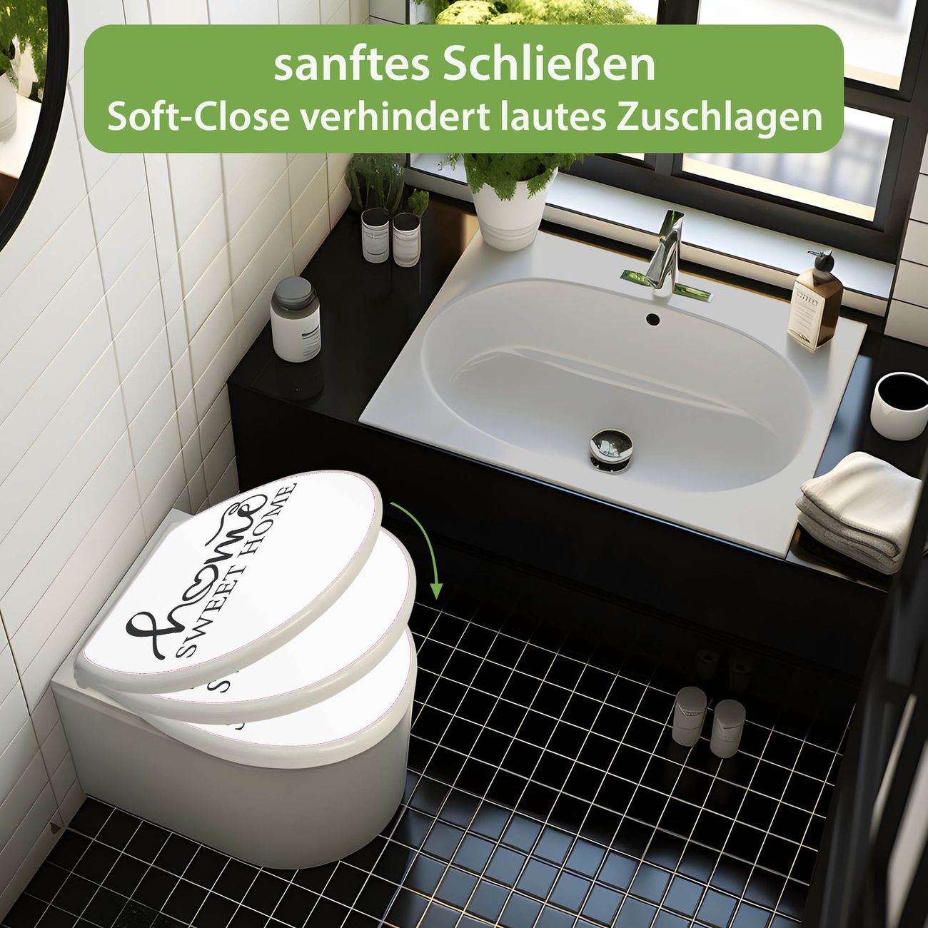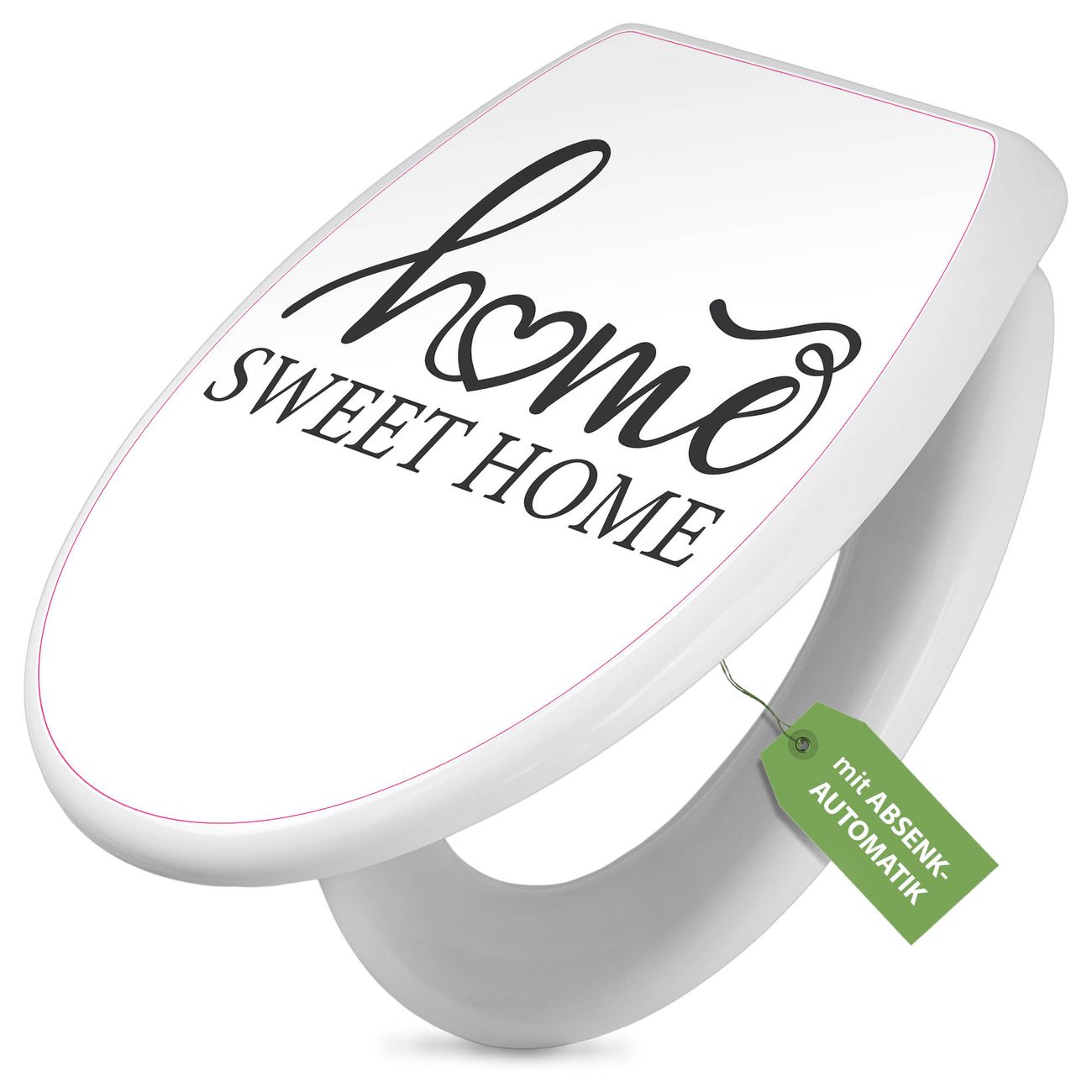Toilettendeckel weiß mit Absenkautomatik Motiv Home Sweet Home Schriftzug