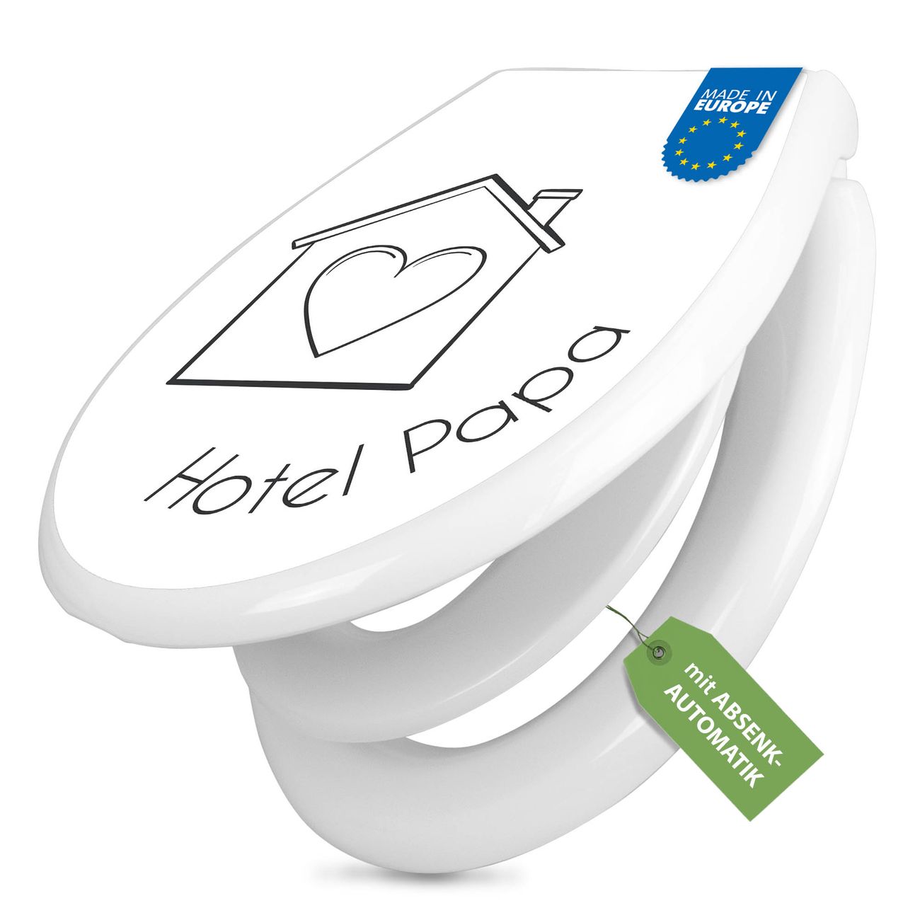 Toilettendeckel weiß mit Absenkautomatik Motiv Hotel Papa Haus mit Herz 2
