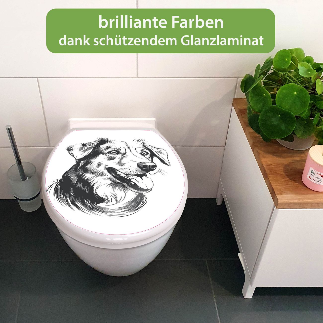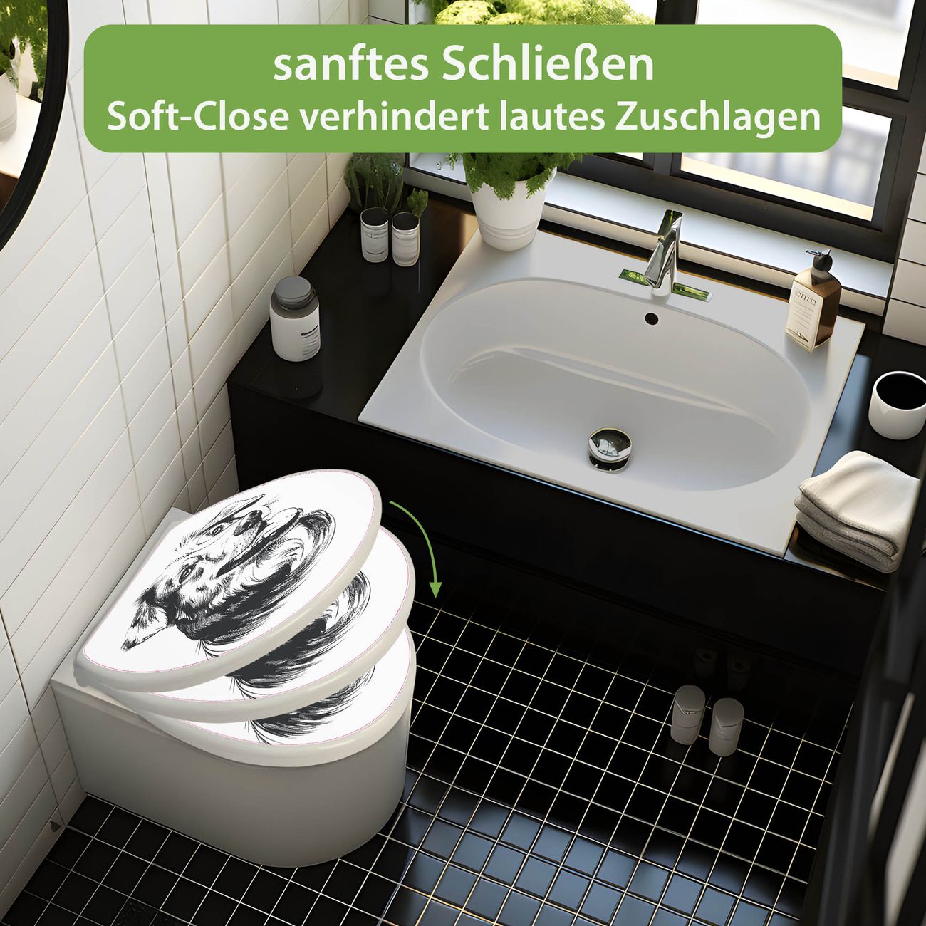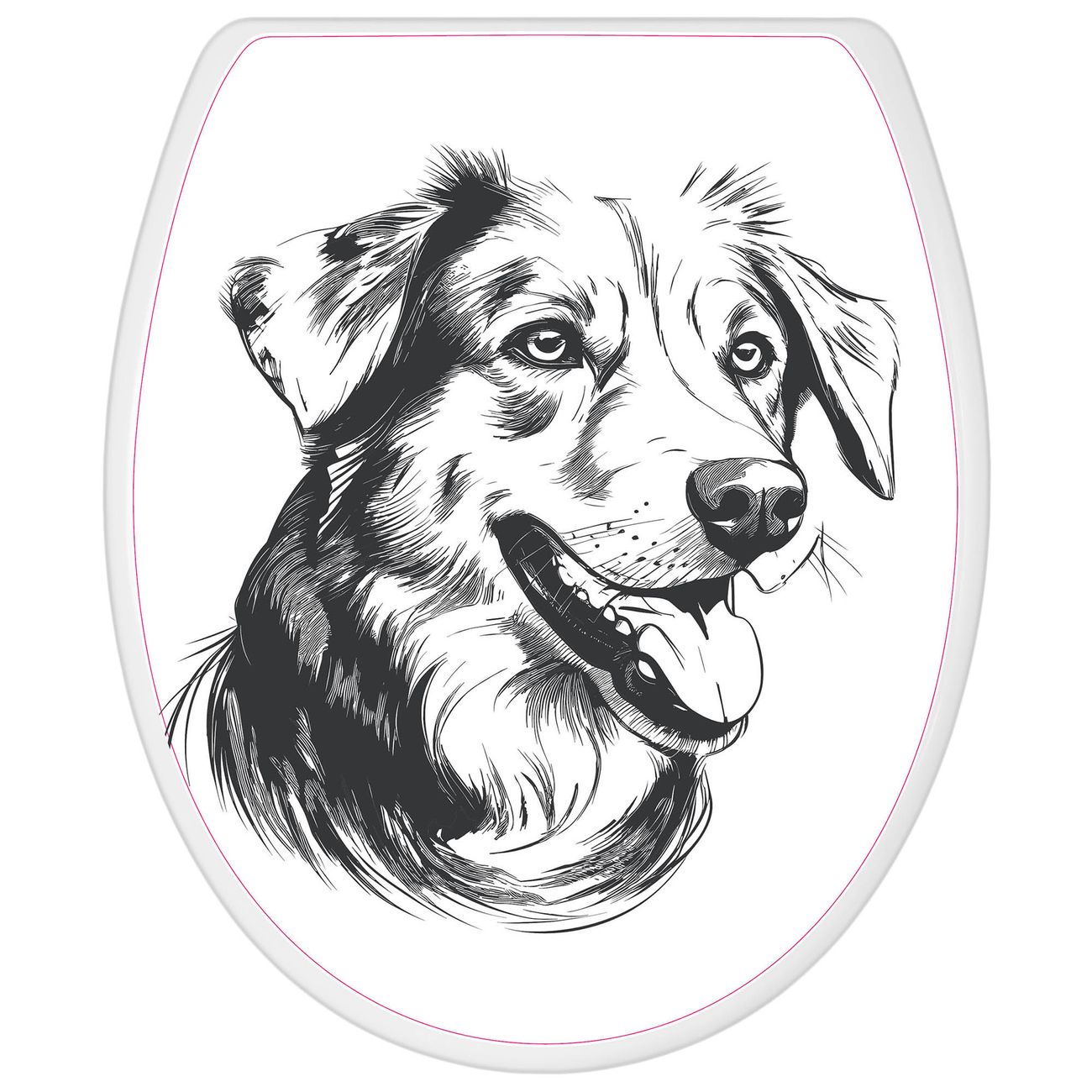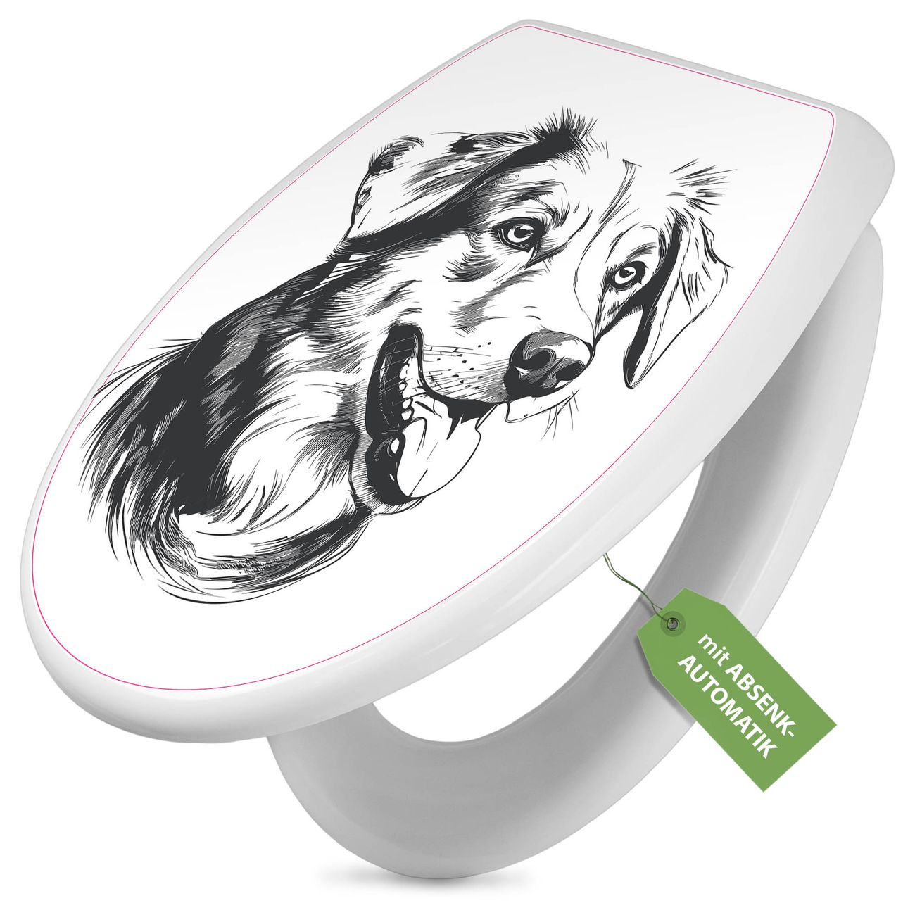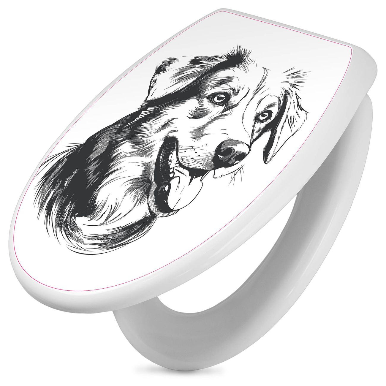 Toilettendeckel weiß mit Absenkautomatik Motiv Hund Illustration