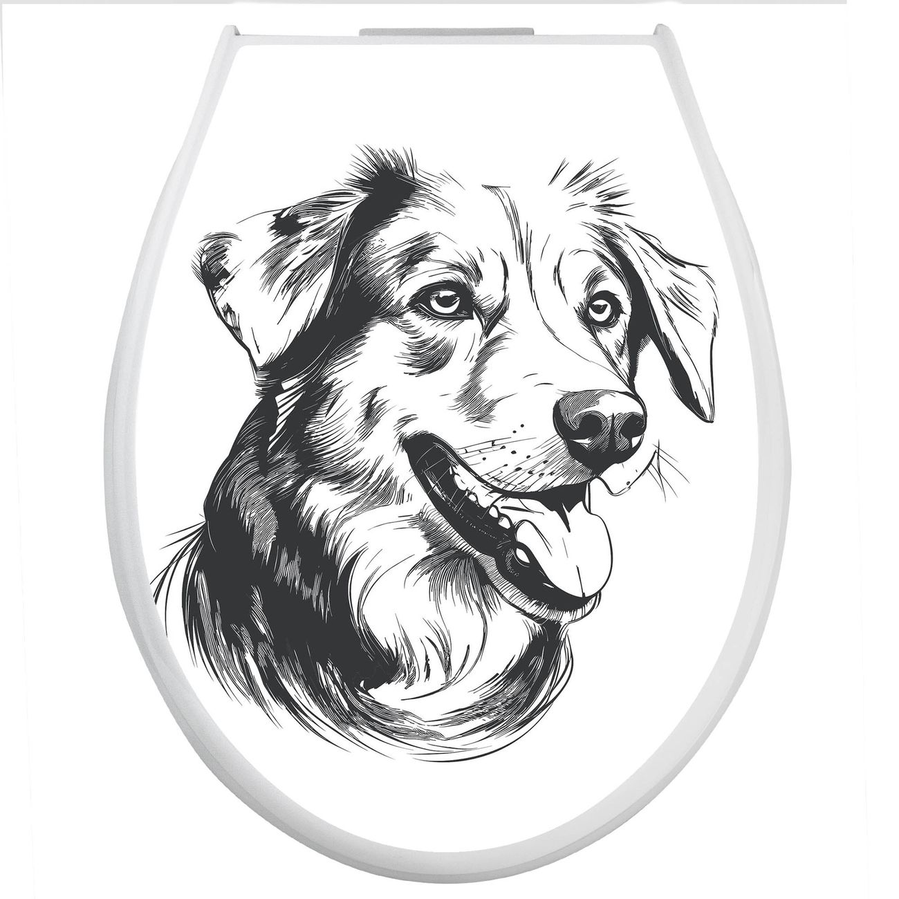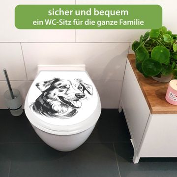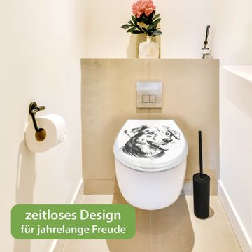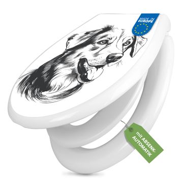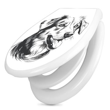 Toilettendeckel weiß mit Absenkautomatik Motiv Hund Illustration