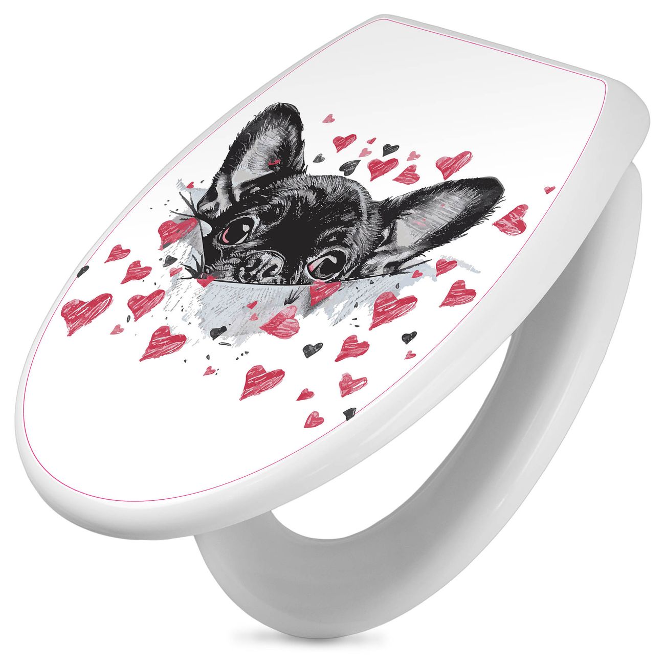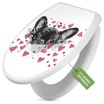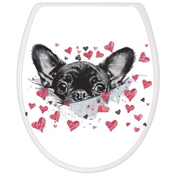 Toilettendeckel weiß mit Absenkautomatik Motiv Hund mit Herzen