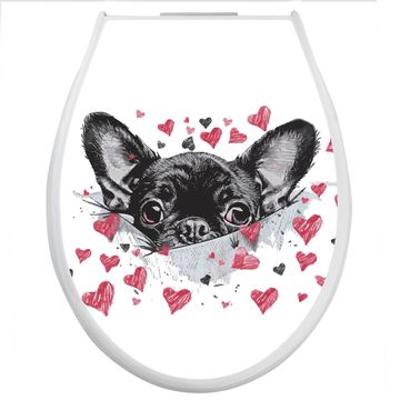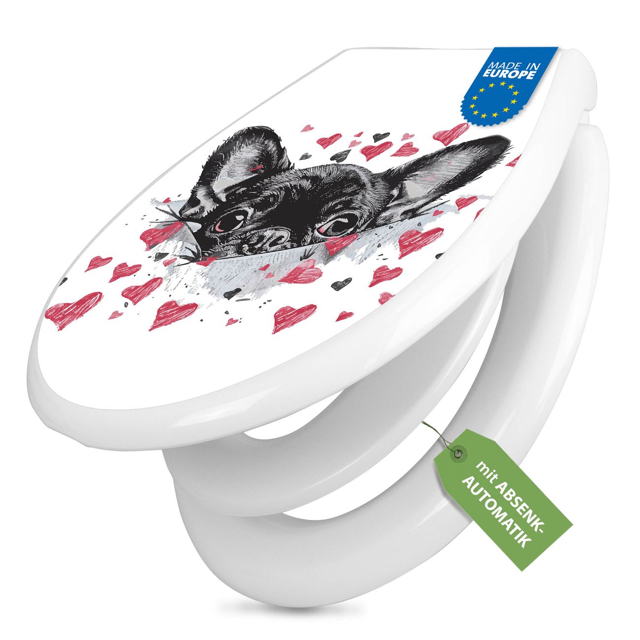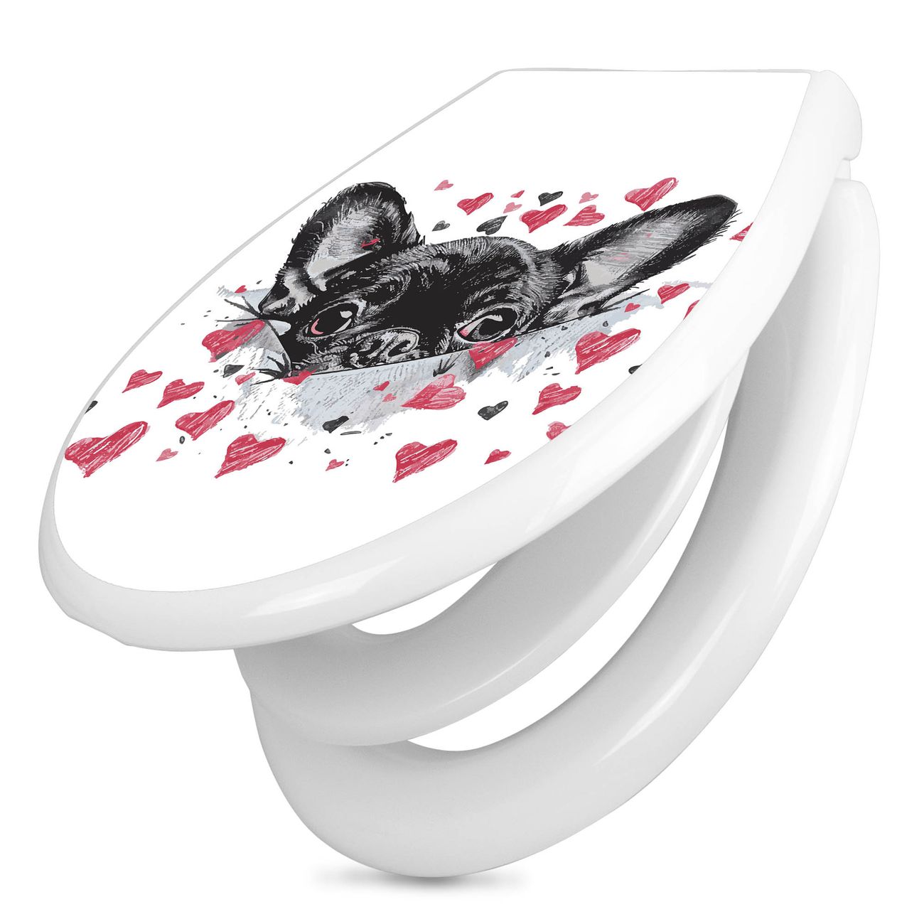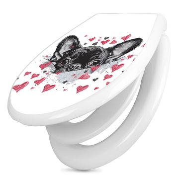 Toilettendeckel weiß mit Absenkautomatik Motiv Hund mit Herzen