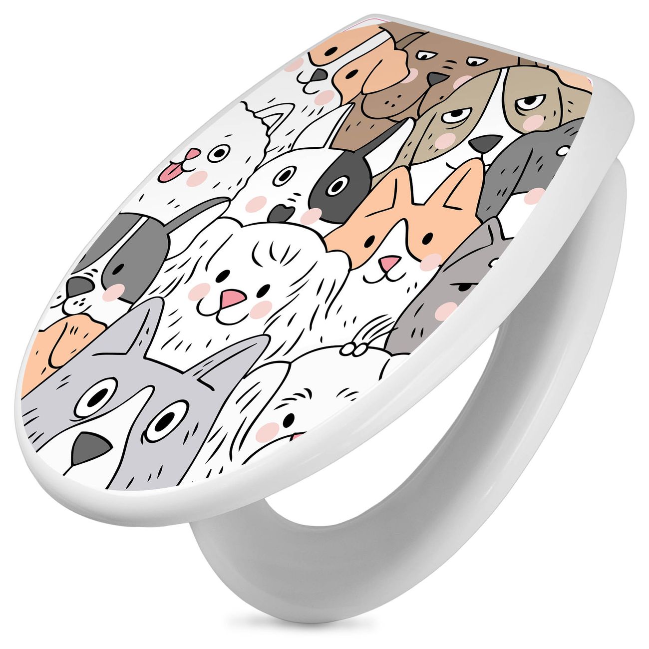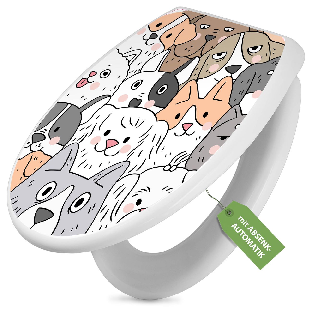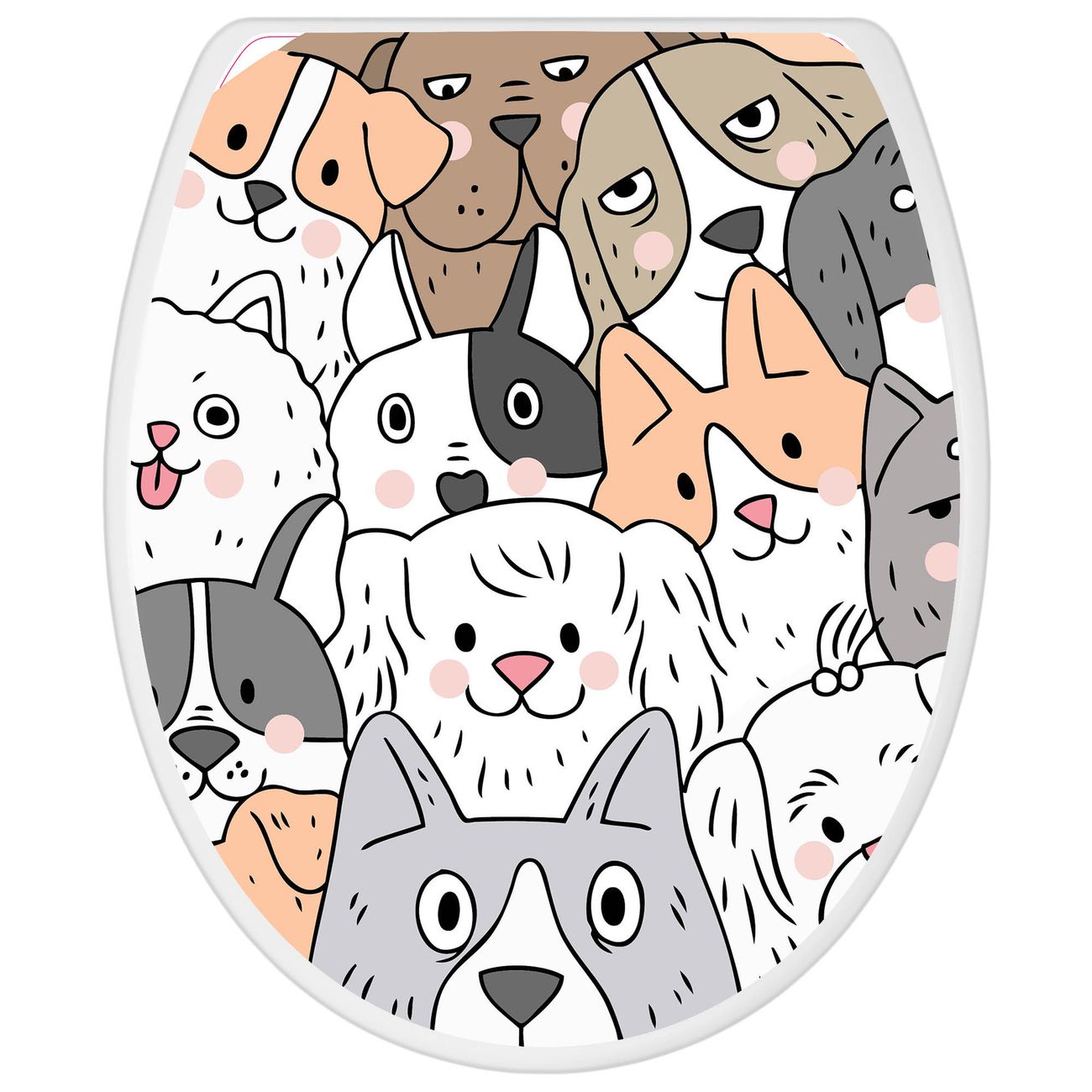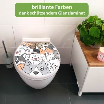 Toilettendeckel weiß mit Absenkautomatik Motiv Hunde Gruppe neugierig