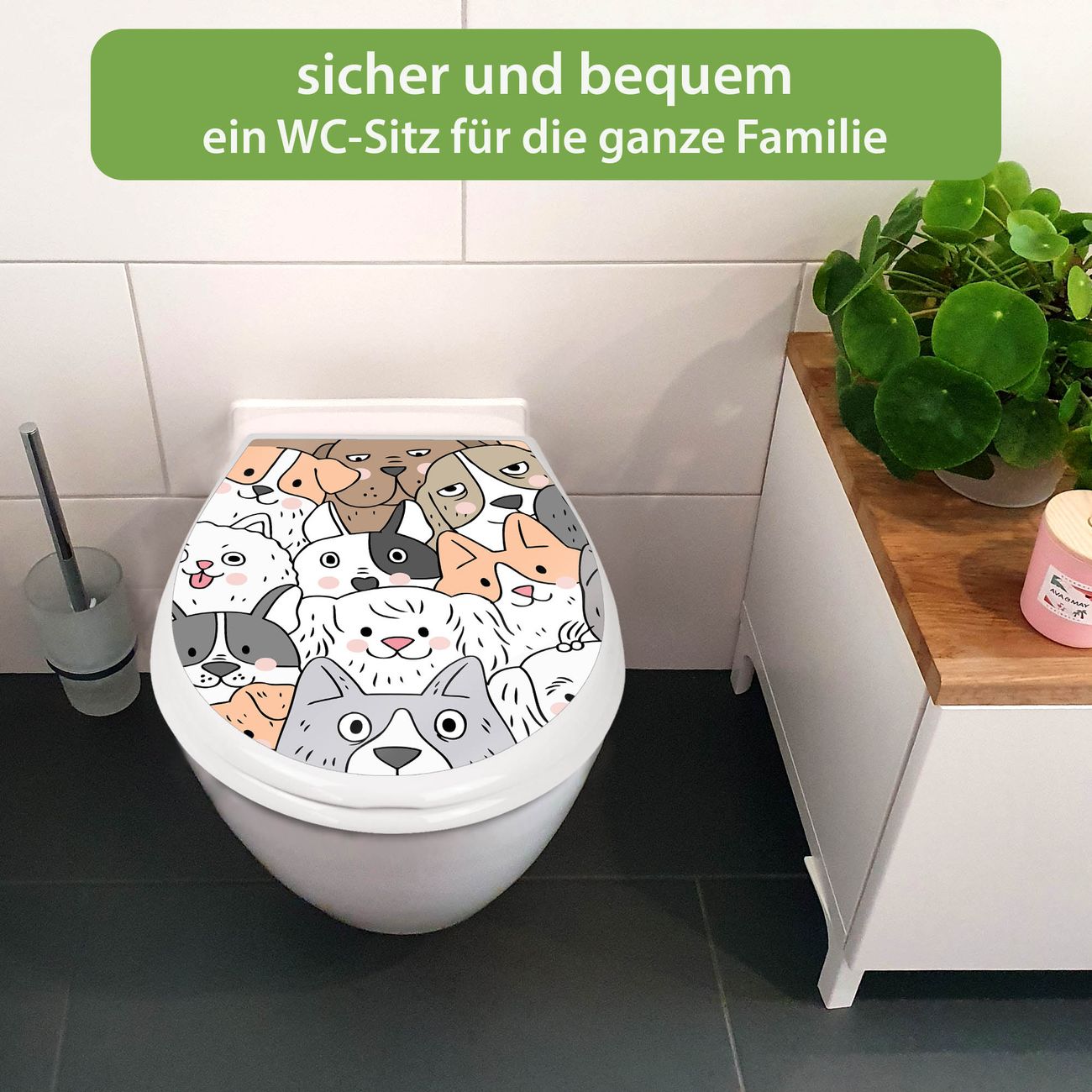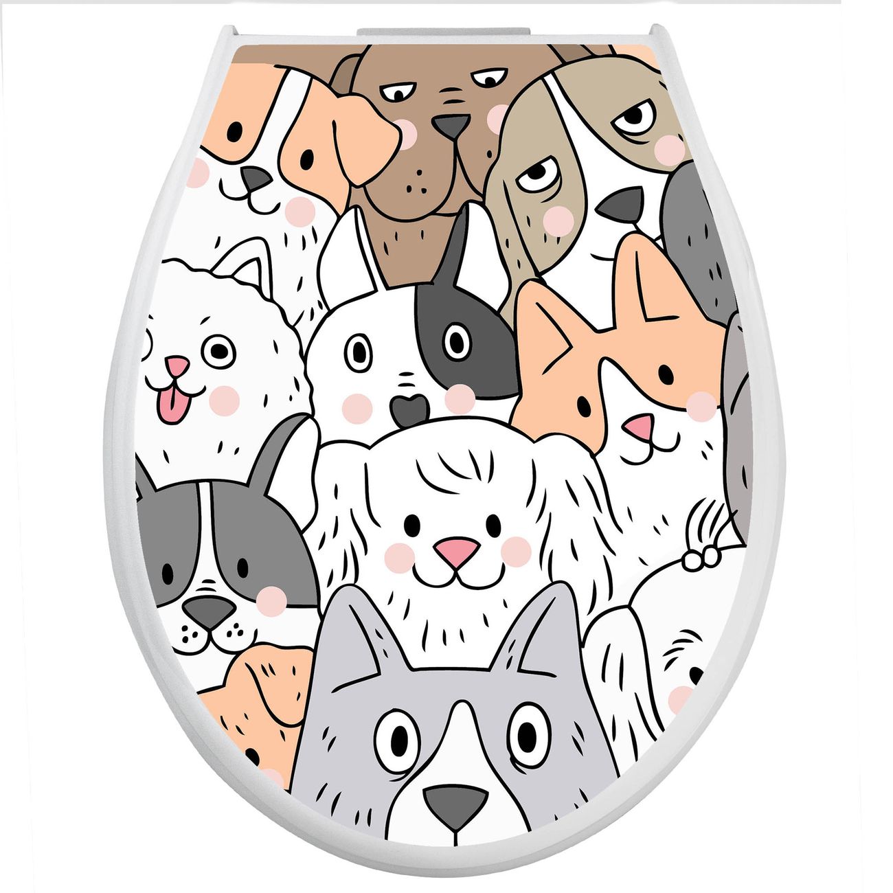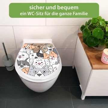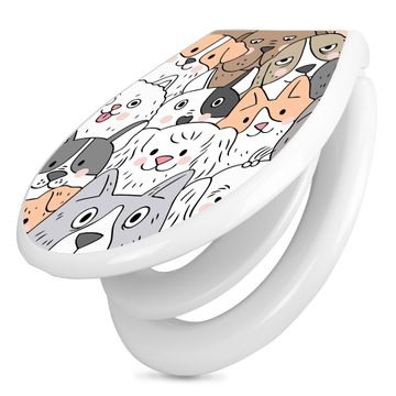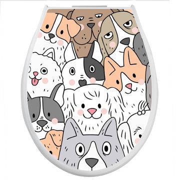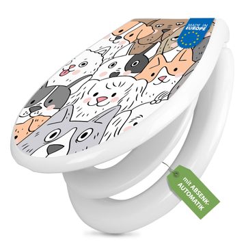 Toilettendeckel weiß mit Absenkautomatik Motiv Hunde Gruppe neugierig