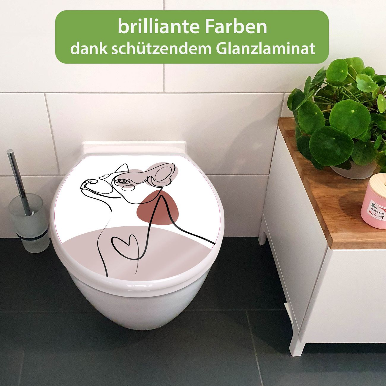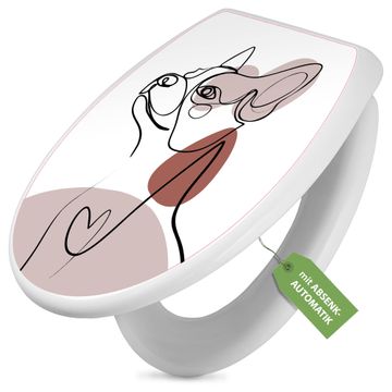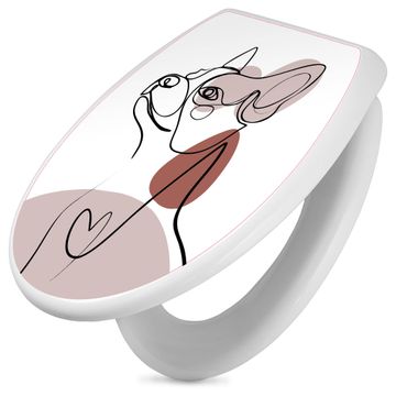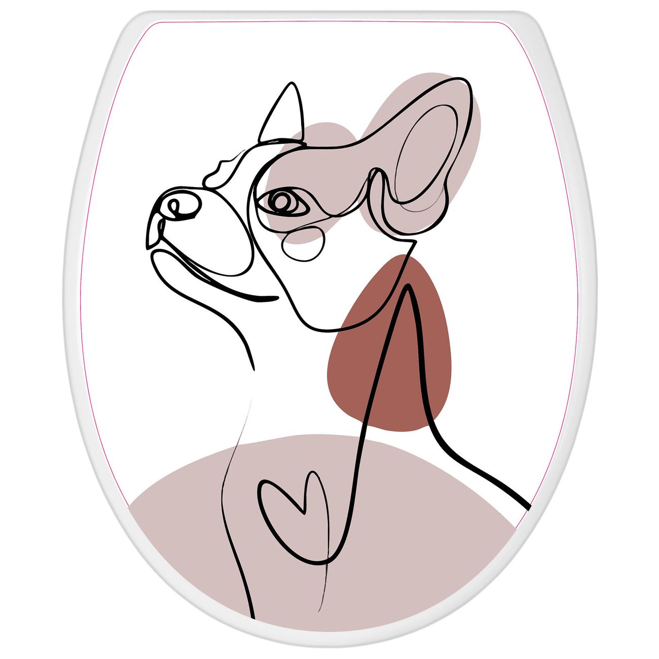 Toilettendeckel weiß mit Absenkautomatik Motiv Hundeporträt Lineart