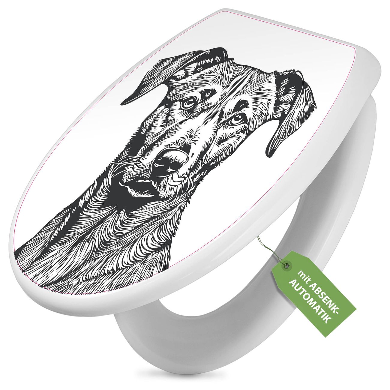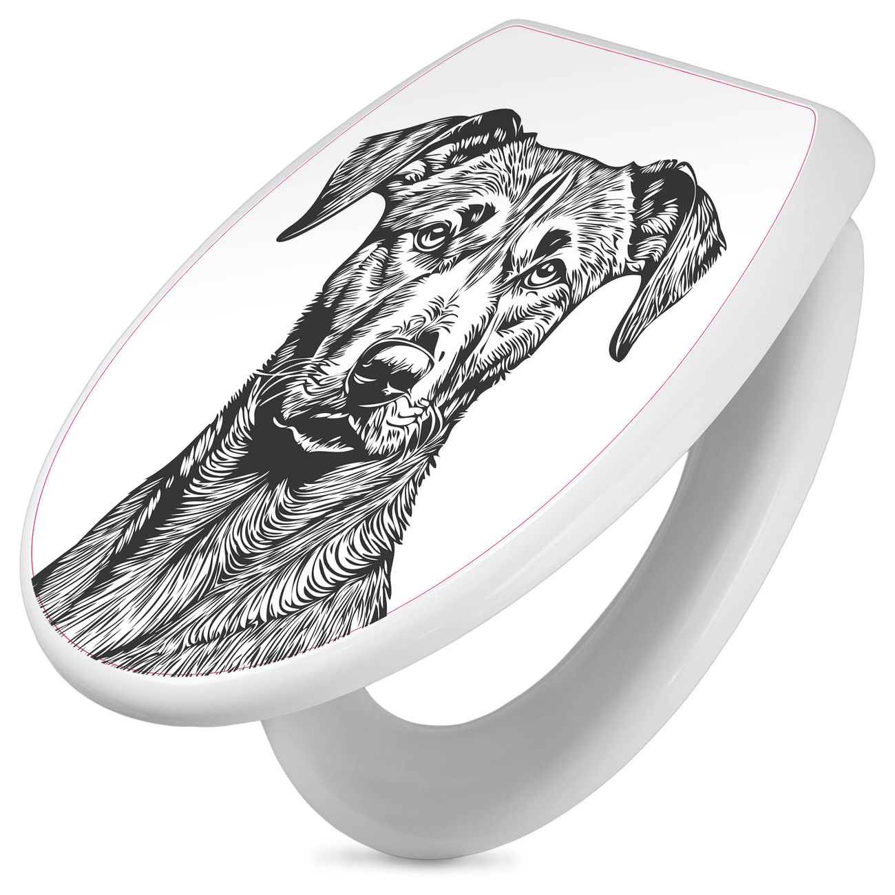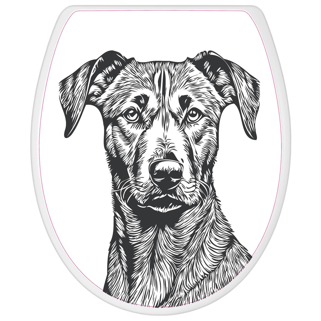 Toilettendeckel weiß mit Absenkautomatik Motiv Hundeskizze 1