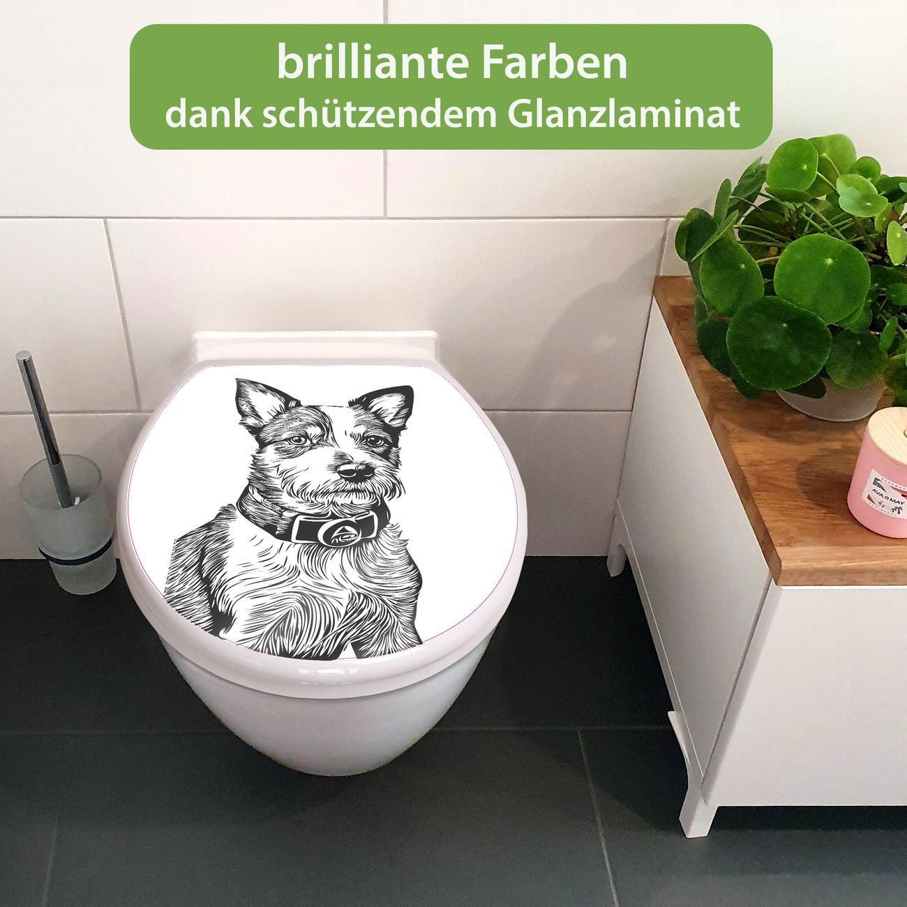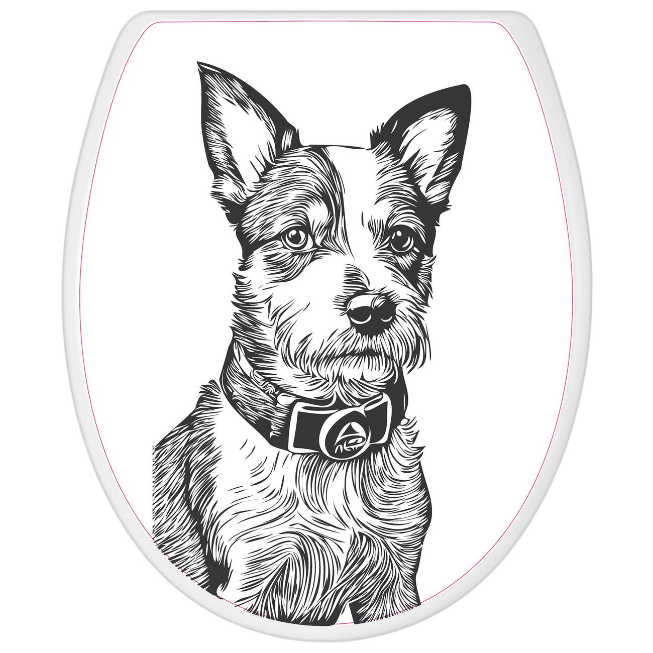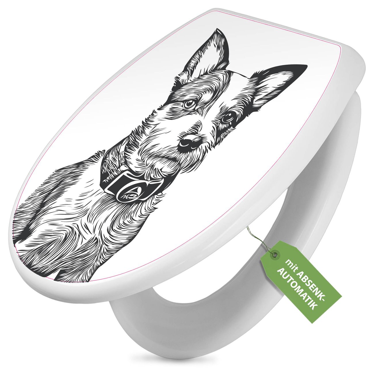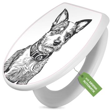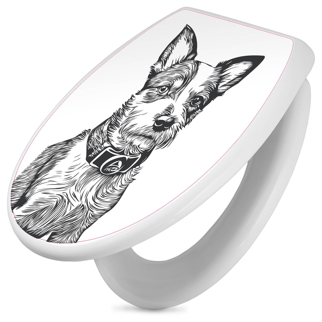 Toilettendeckel weiß mit Absenkautomatik Motiv Hundeskizze 2