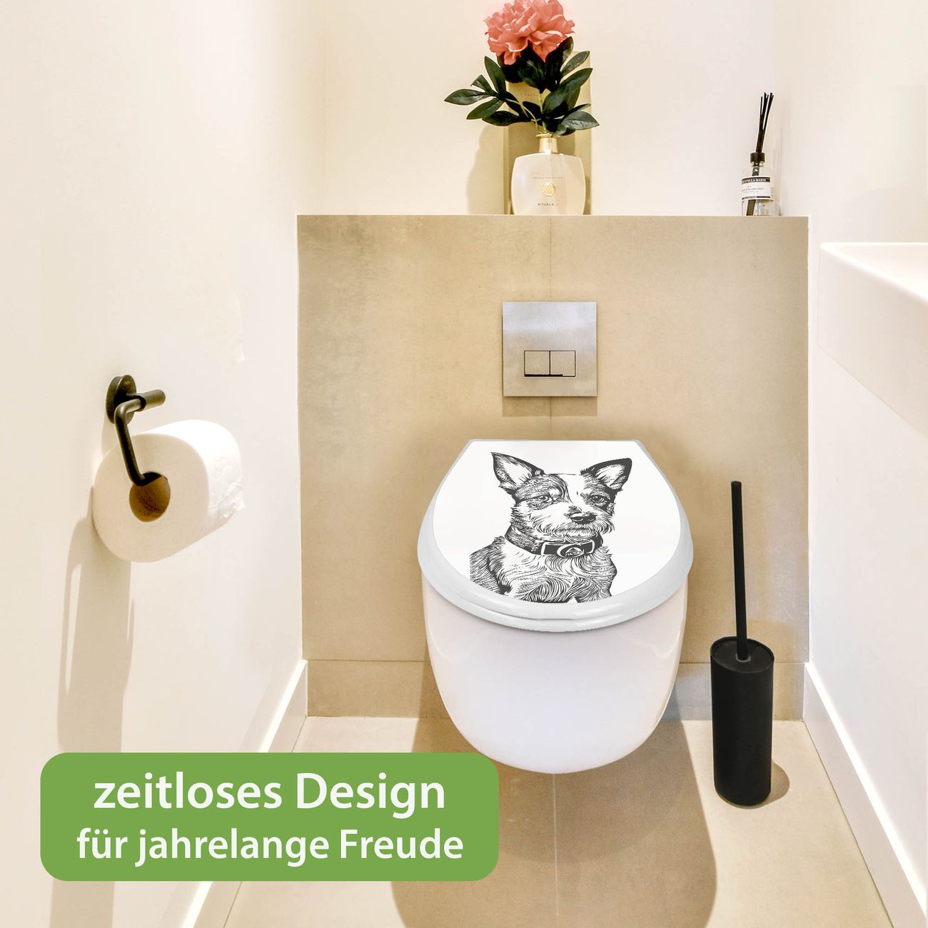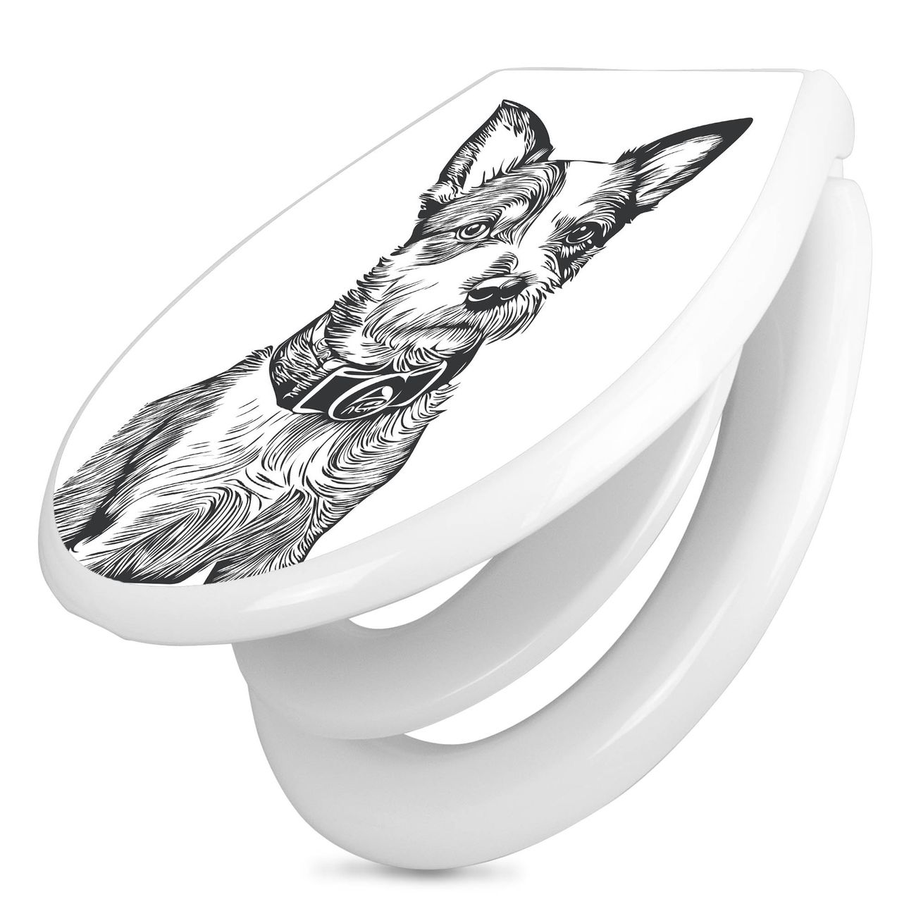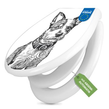 Toilettendeckel weiß mit Absenkautomatik Motiv Hundeskizze 2