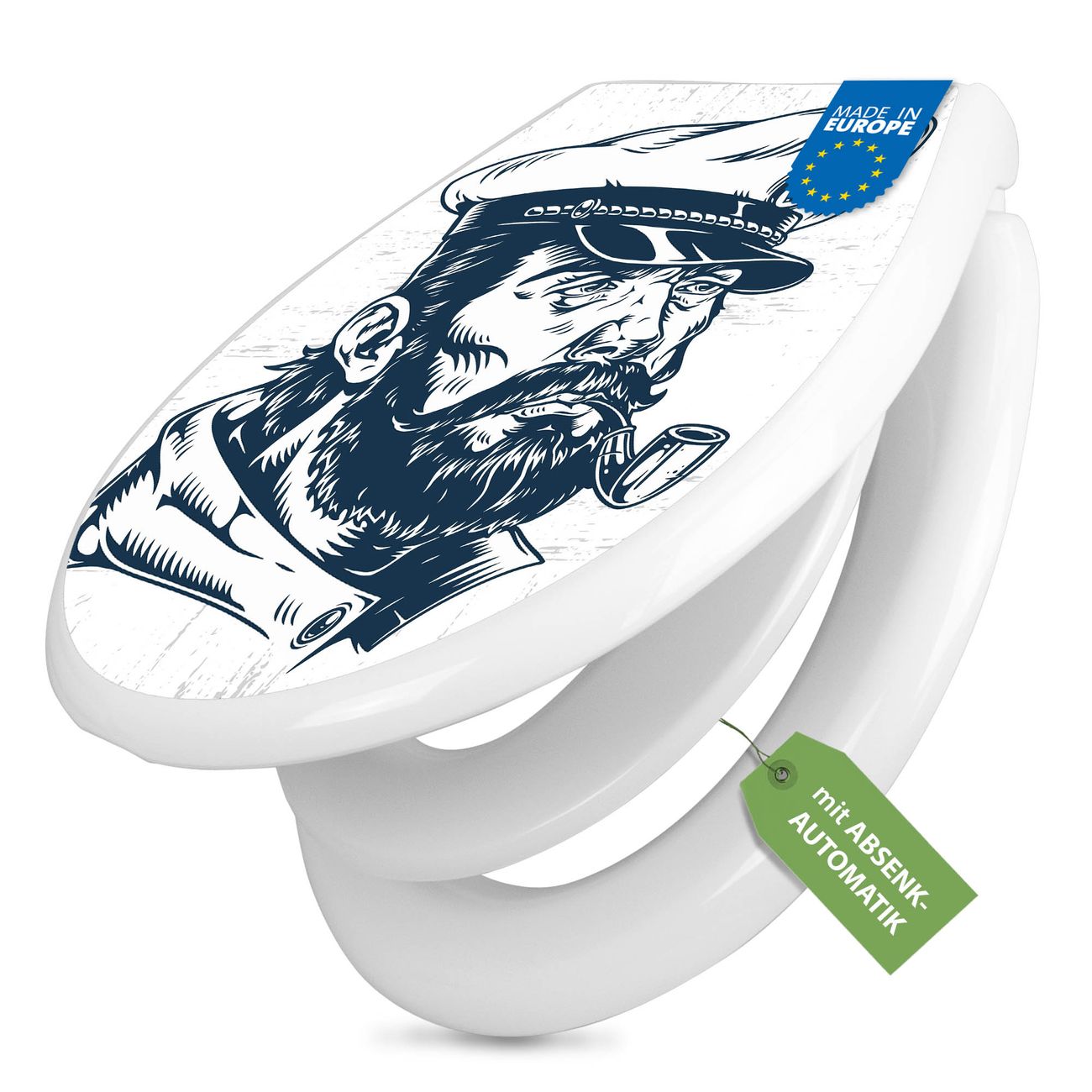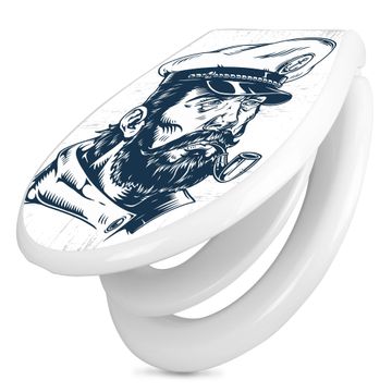 Toilettendeckel weiß mit Absenkautomatik Motiv Kapitän Portrait