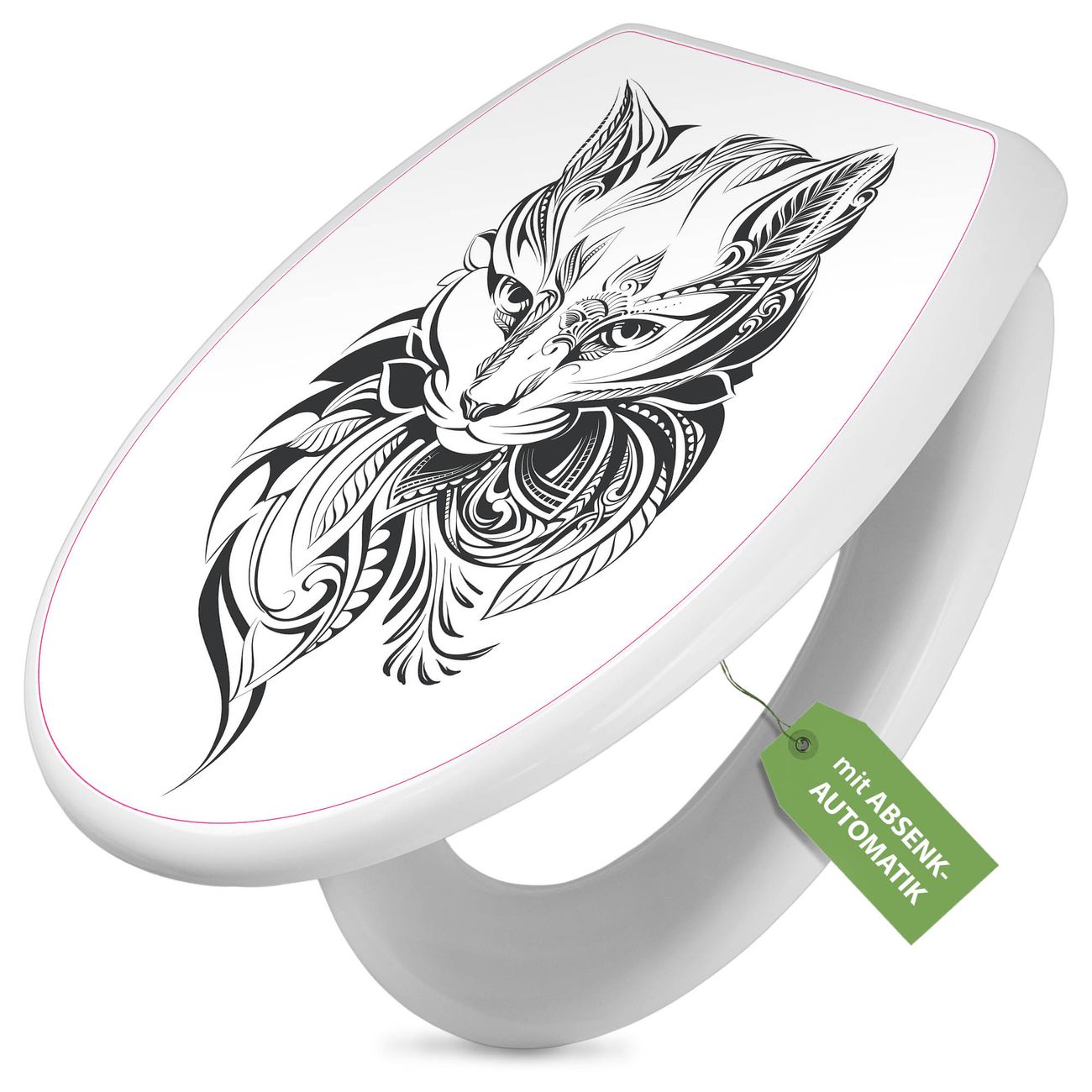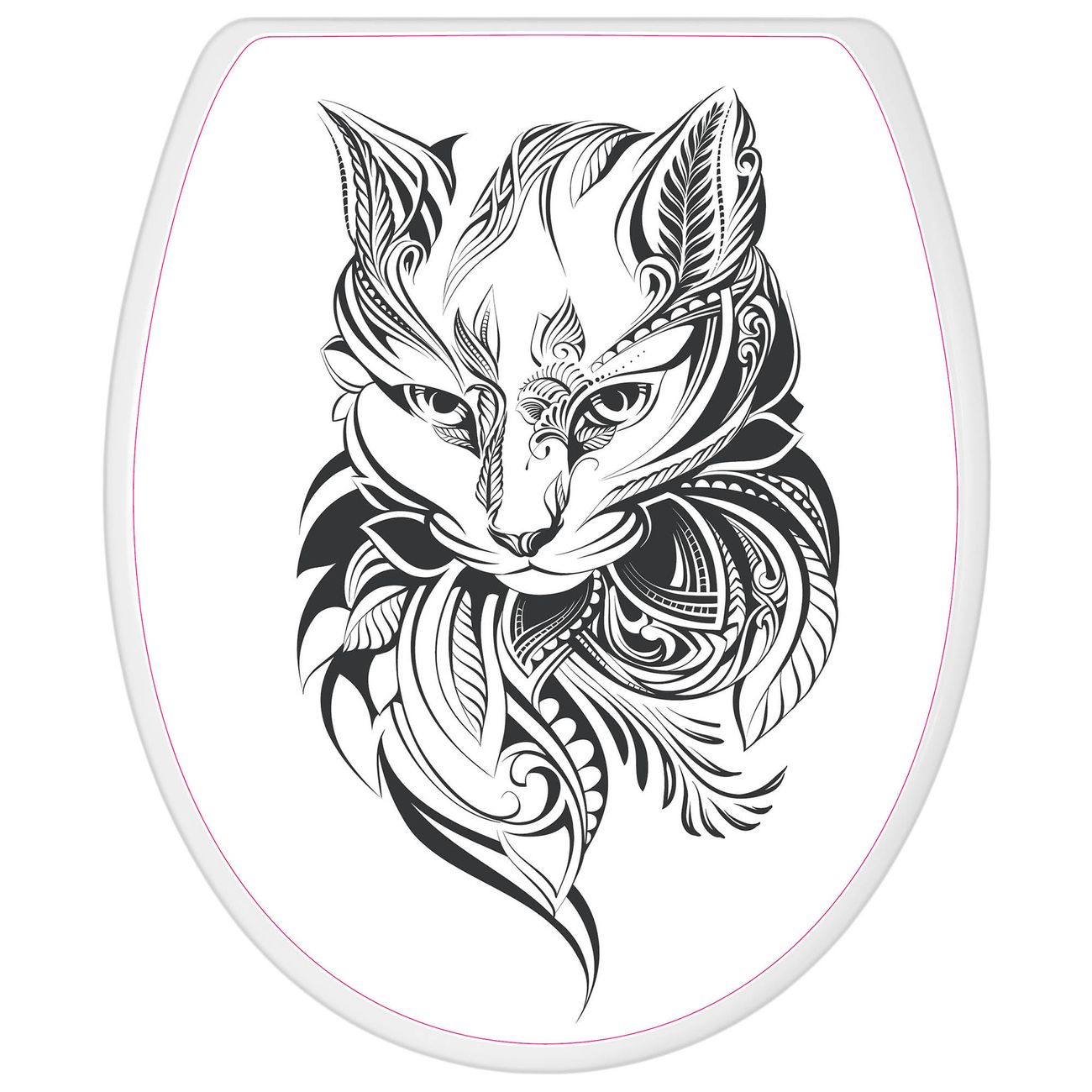 Toilettendeckel weiß mit Absenkautomatik Motiv Katze 2