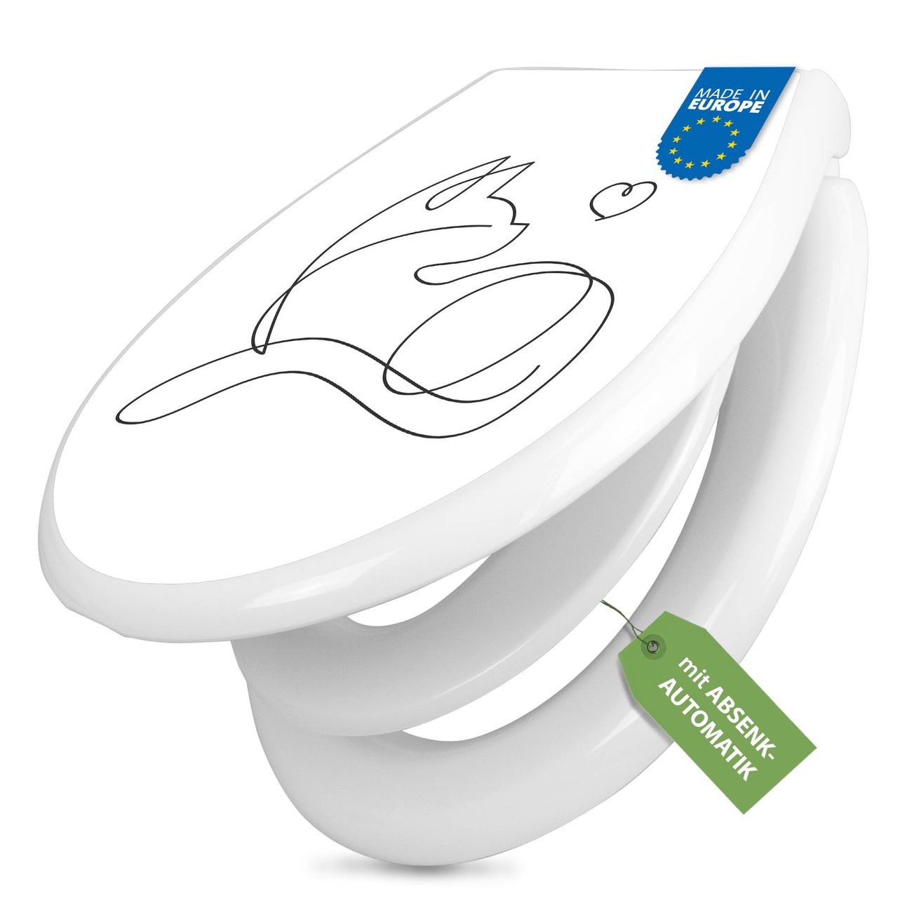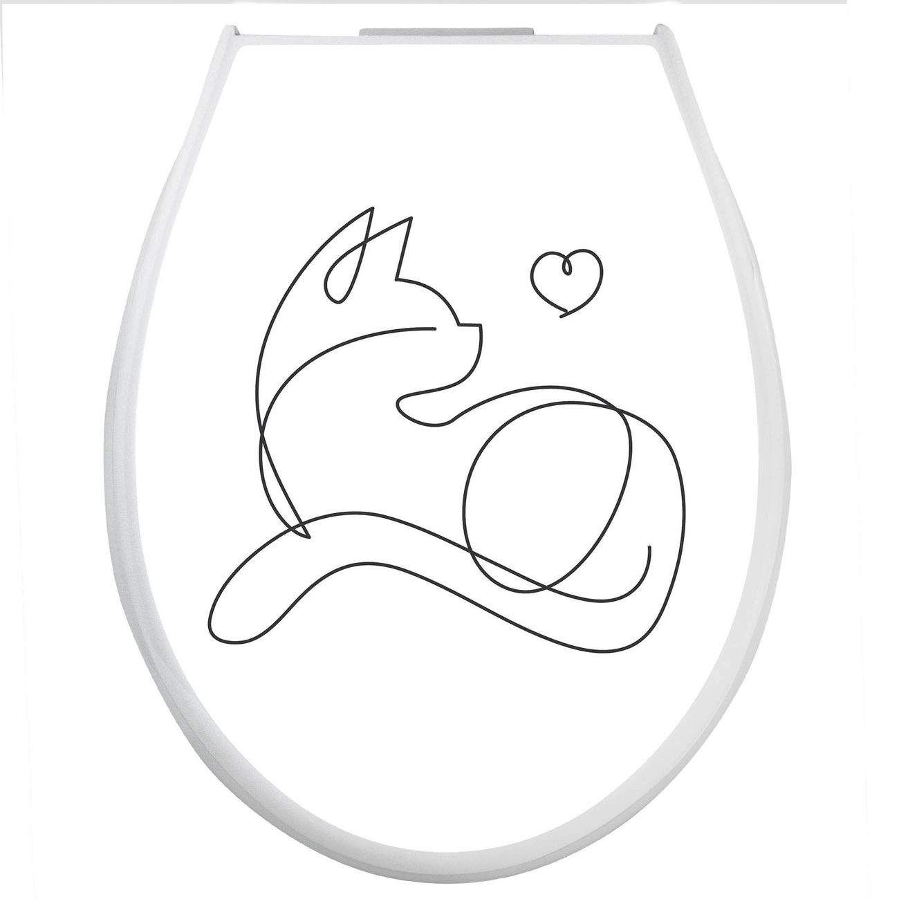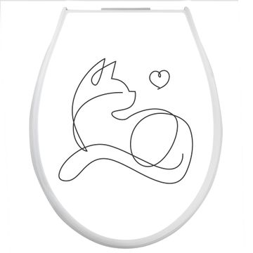 Toilettendeckel weiß mit Absenkautomatik Motiv Katze Lineart