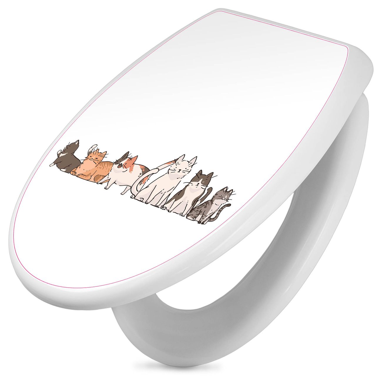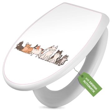 Toilettendeckel weiß mit Absenkautomatik Motiv Katzengang