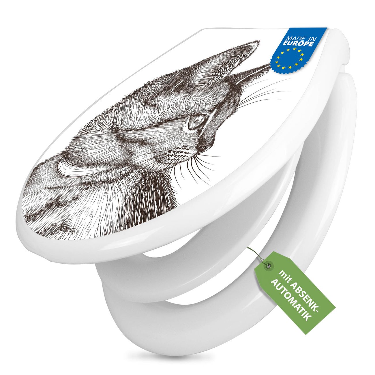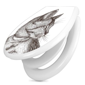 Toilettendeckel weiß mit Absenkautomatik Motiv Katzenillustration