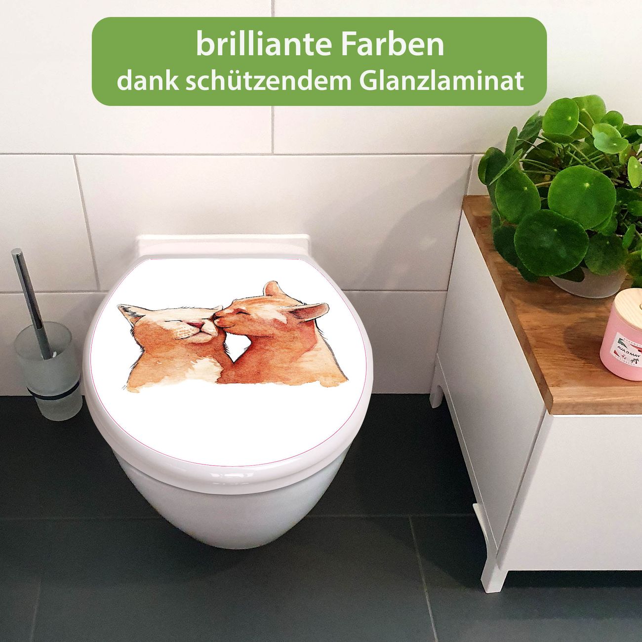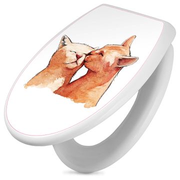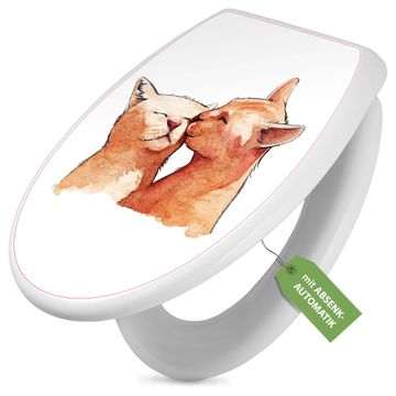 Toilettendeckel weiß mit Absenkautomatik Motiv Katzenkuss
