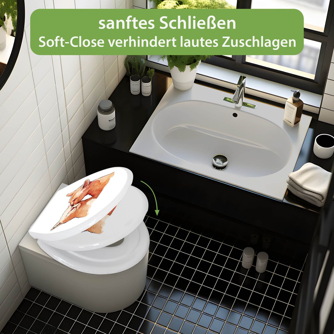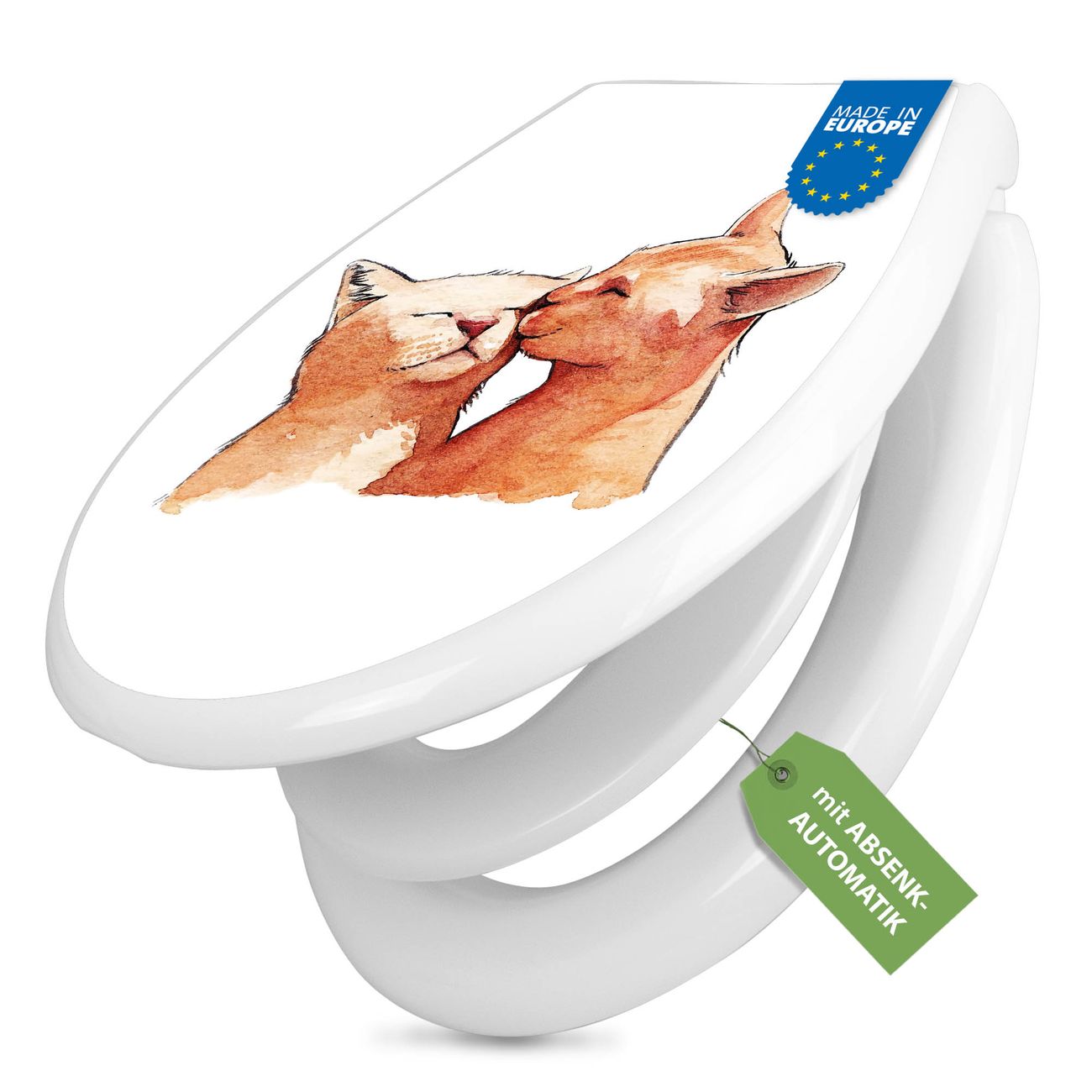 Toilettendeckel weiß mit Absenkautomatik Motiv Katzenkuss