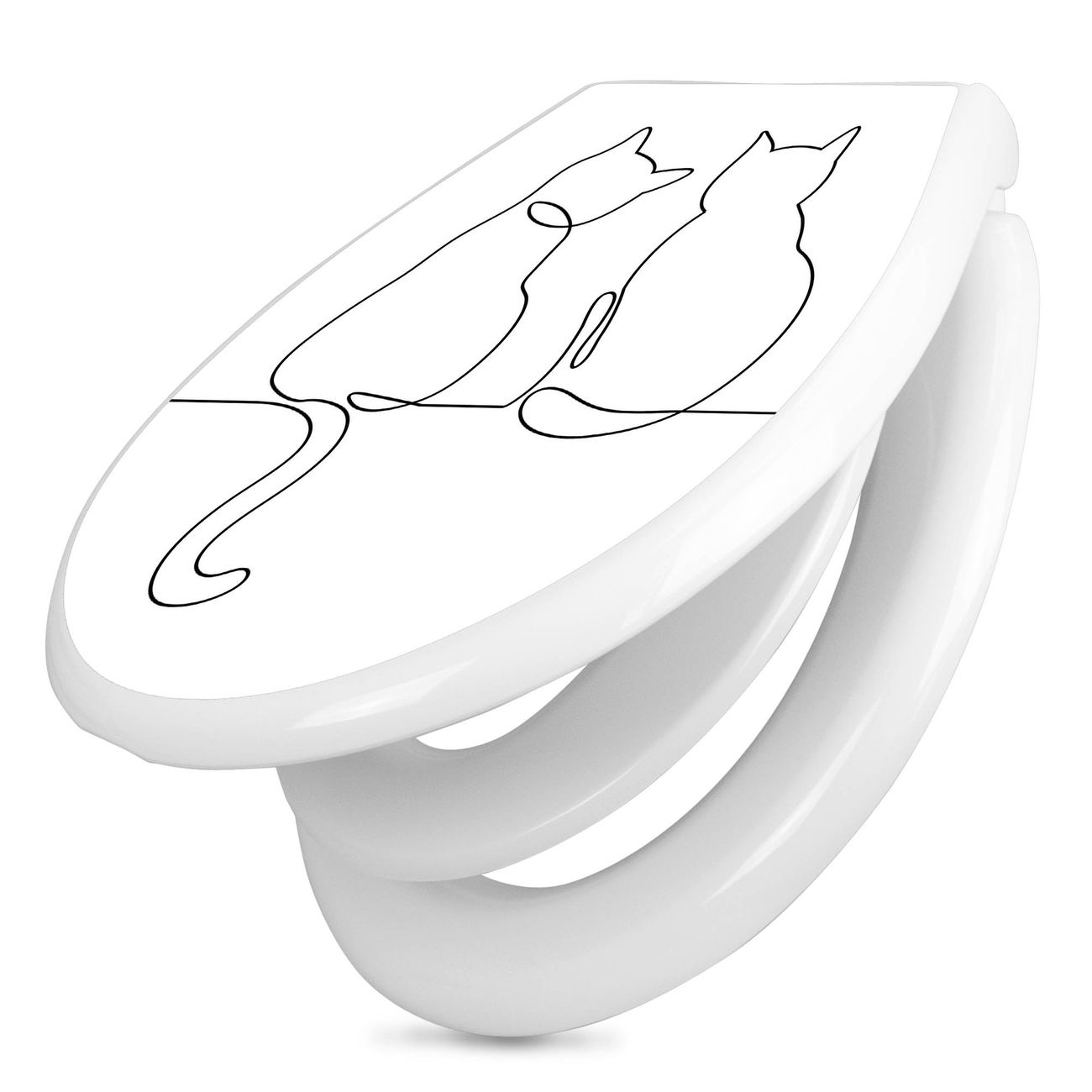 Toilettendeckel weiß mit Absenkautomatik Motiv Katzenliebe 2