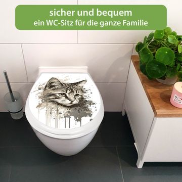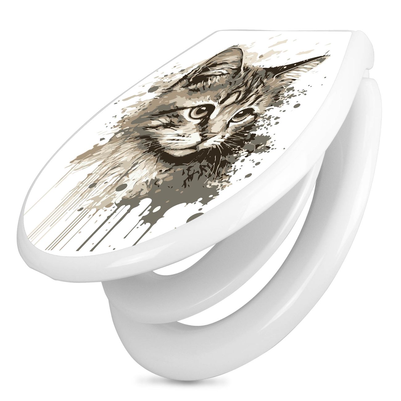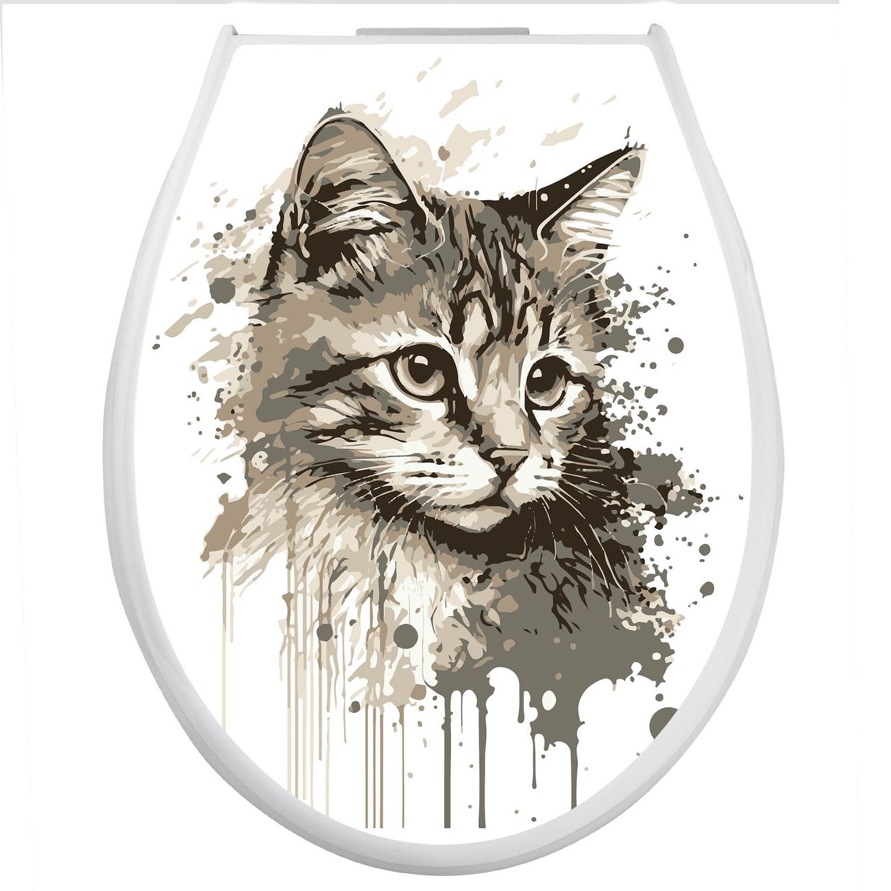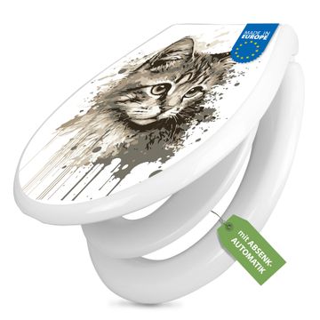 Toilettendeckel weiß mit Absenkautomatik Motiv Katzenportrait in Aquarell 3