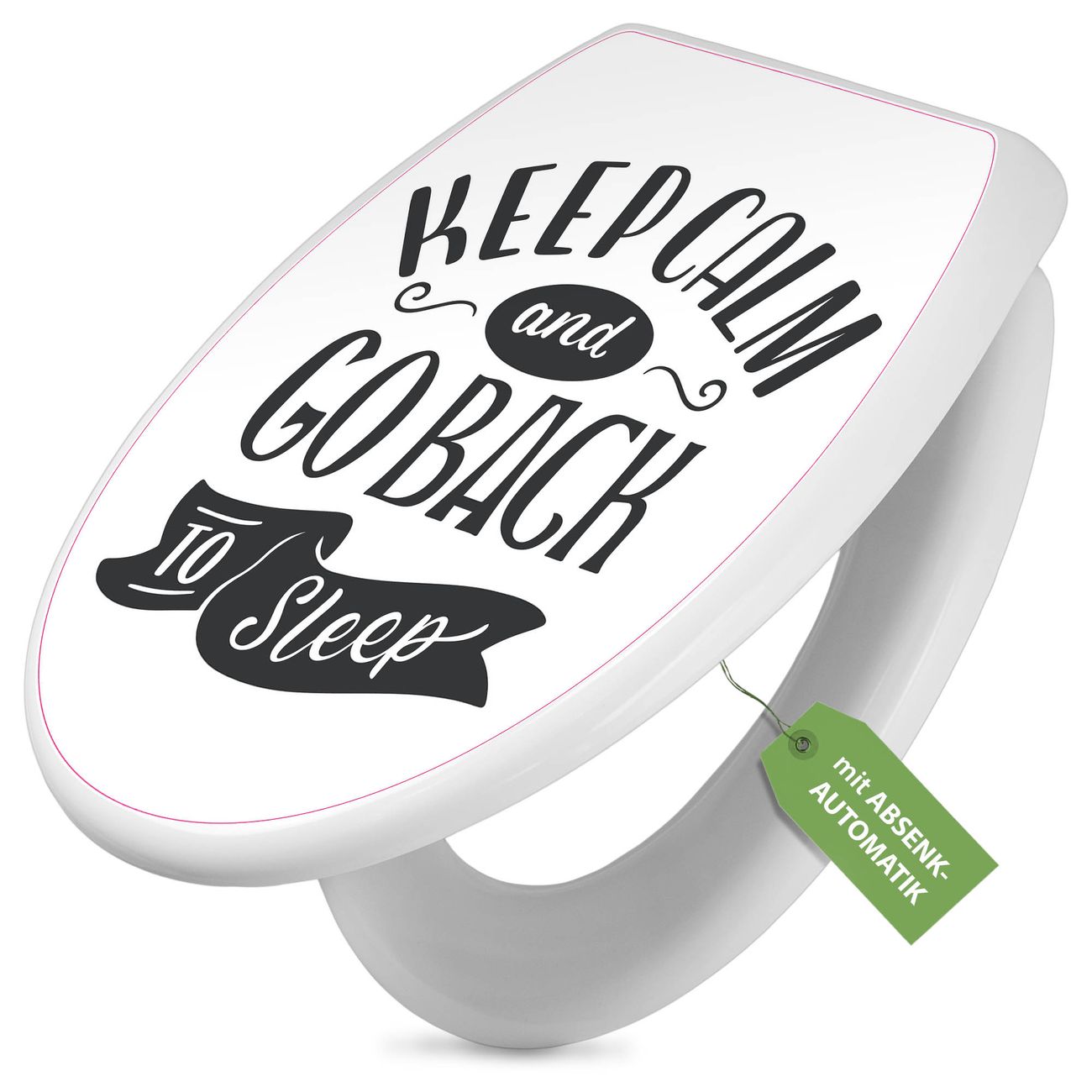 Toilettendeckel weiß mit Absenkautomatik Motiv Keep Calm Schriftzug