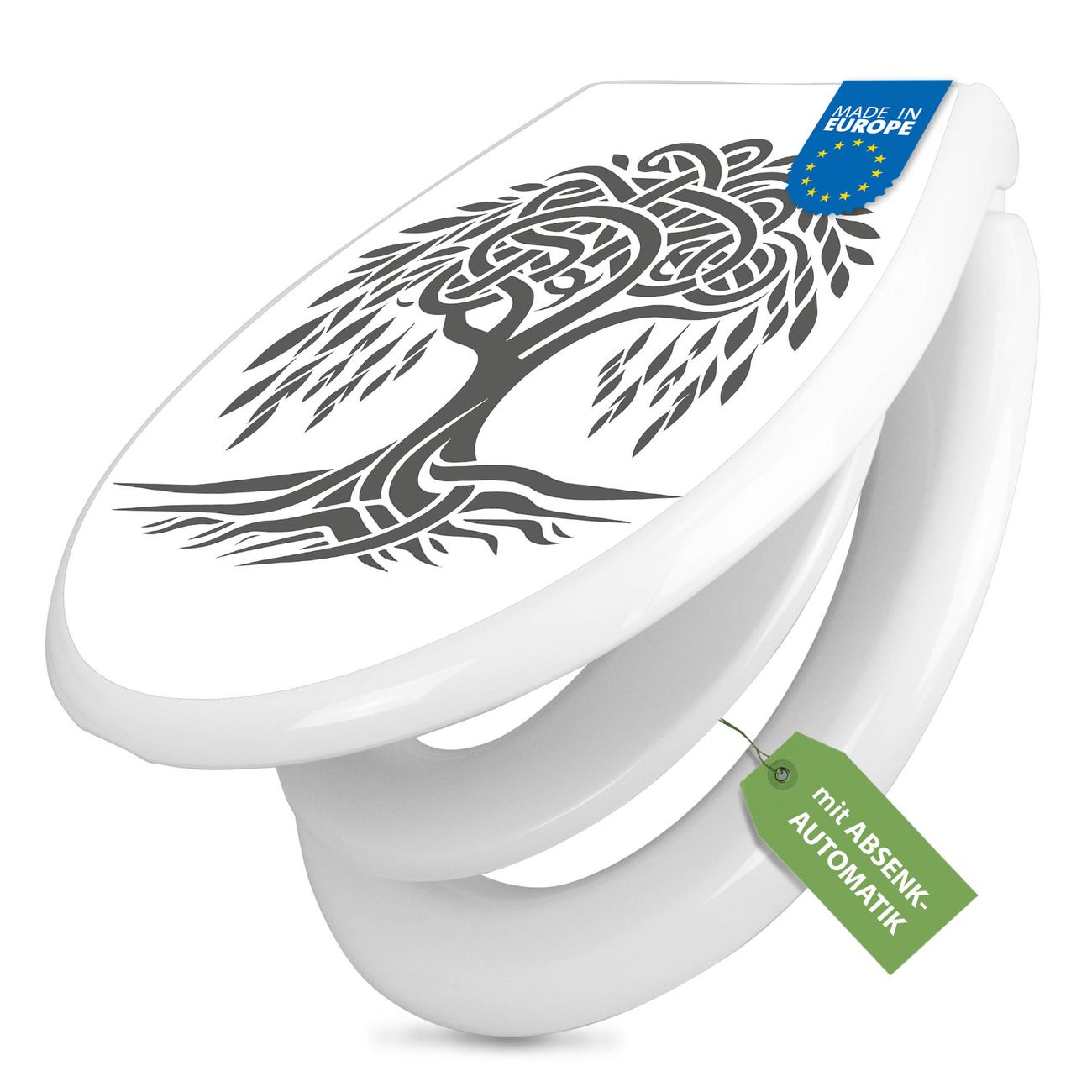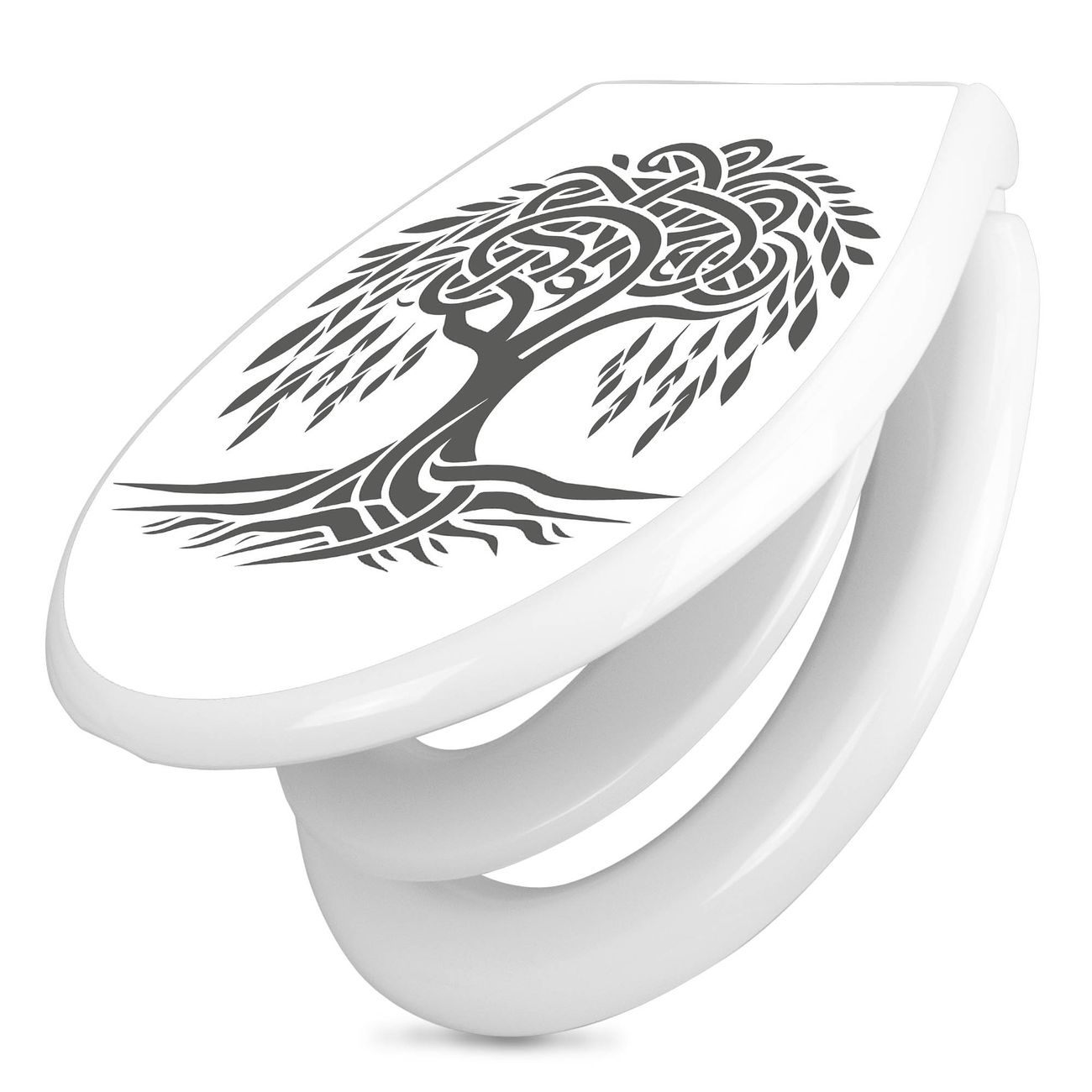 Toilettendeckel weiß mit Absenkautomatik Motiv Keltischer Baum des Lebens
