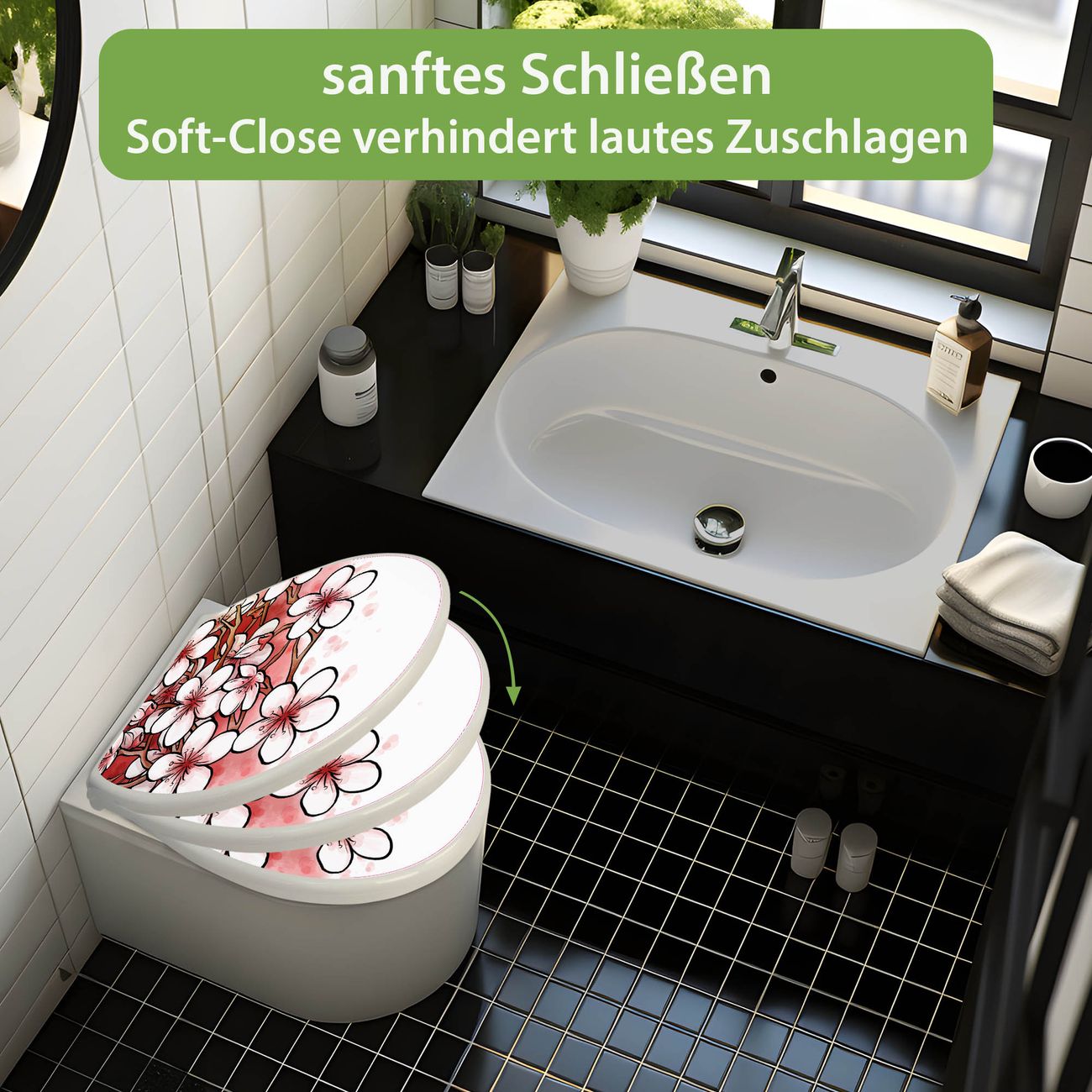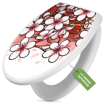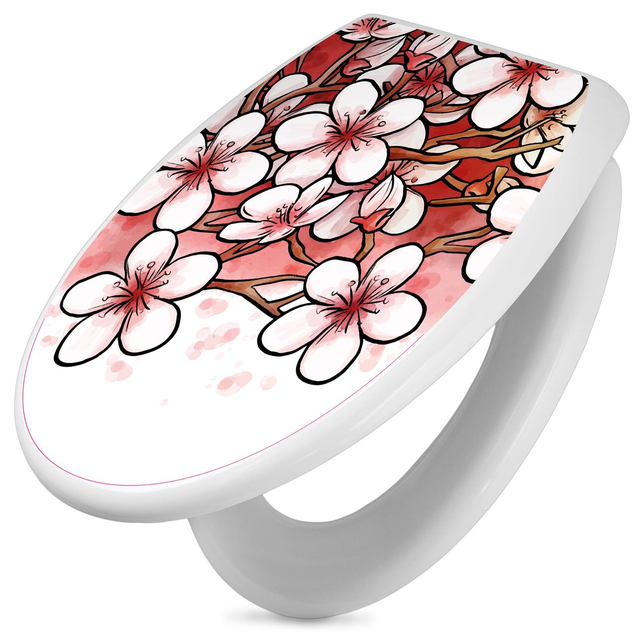 Toilettendeckel weiß mit Absenkautomatik Motiv Kirschblütentraum