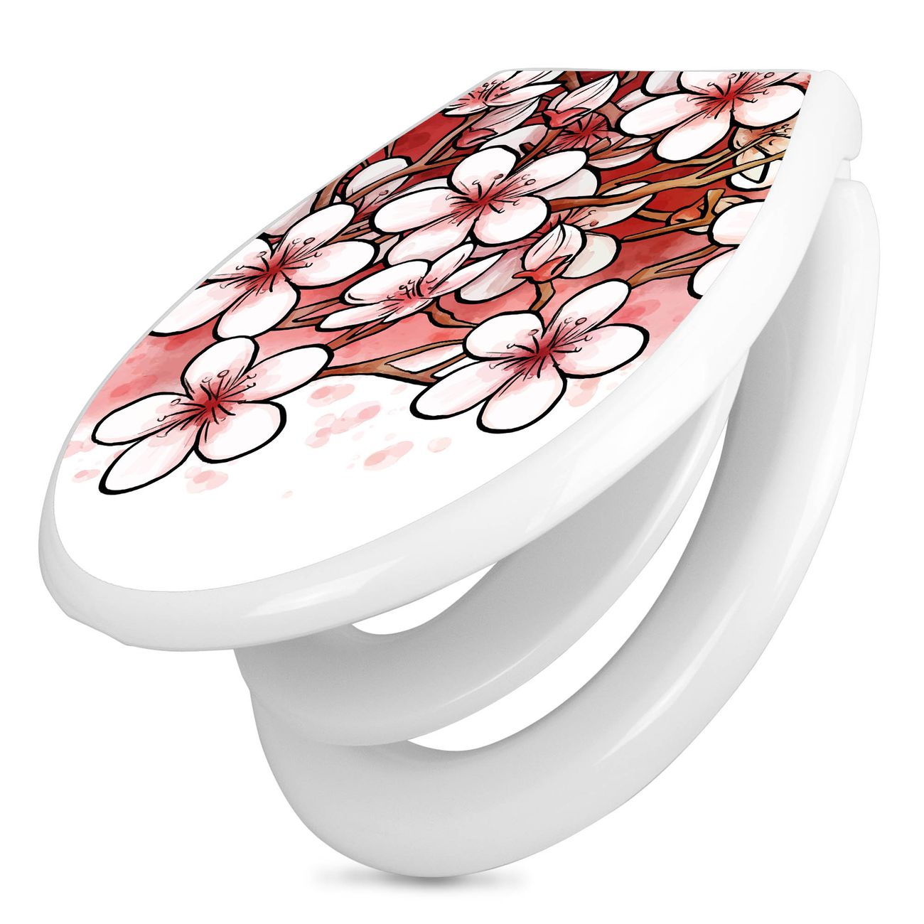 Toilettendeckel weiß mit Absenkautomatik Motiv Kirschblütentraum