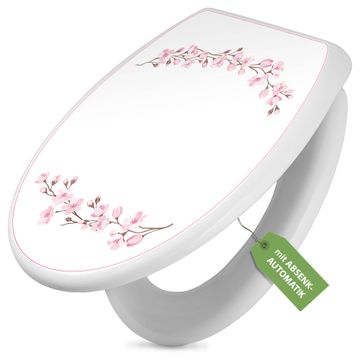 Toilettendeckel weiß mit Absenkautomatik Motiv Kirschblütenzauber