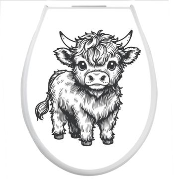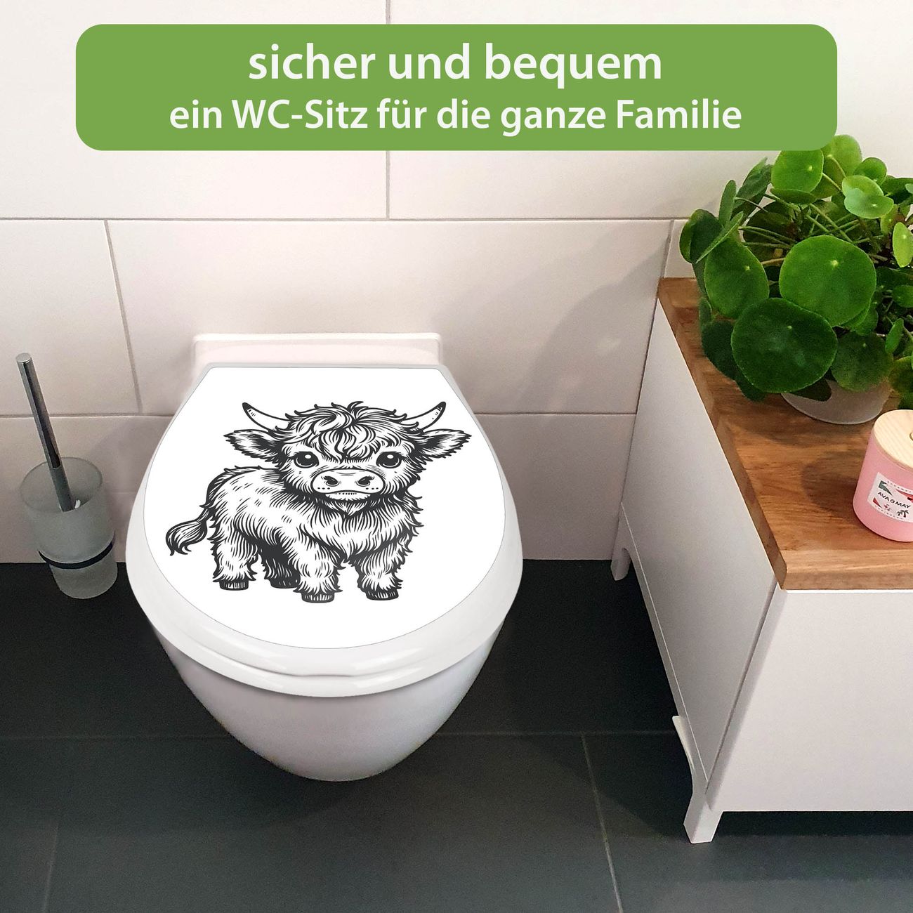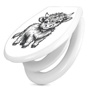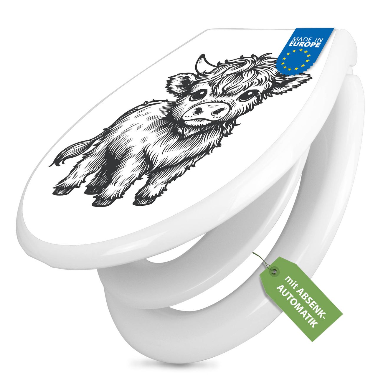 Toilettendeckel weiß mit Absenkautomatik Motiv Kleines Hochlandrind Zeichnung