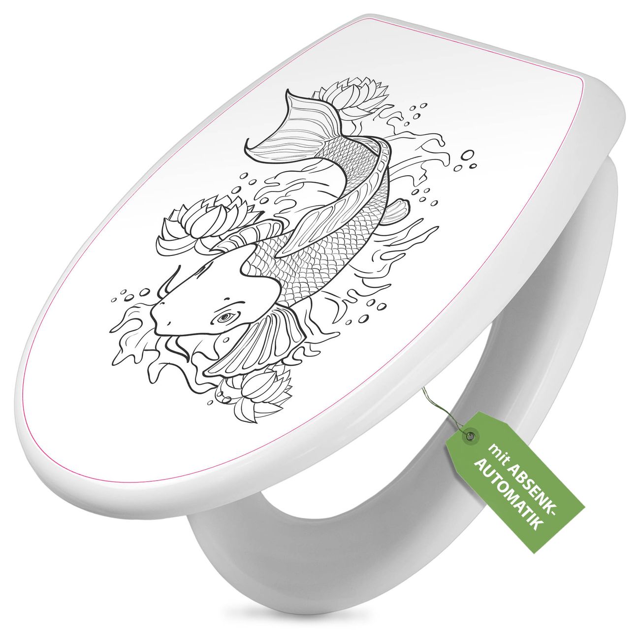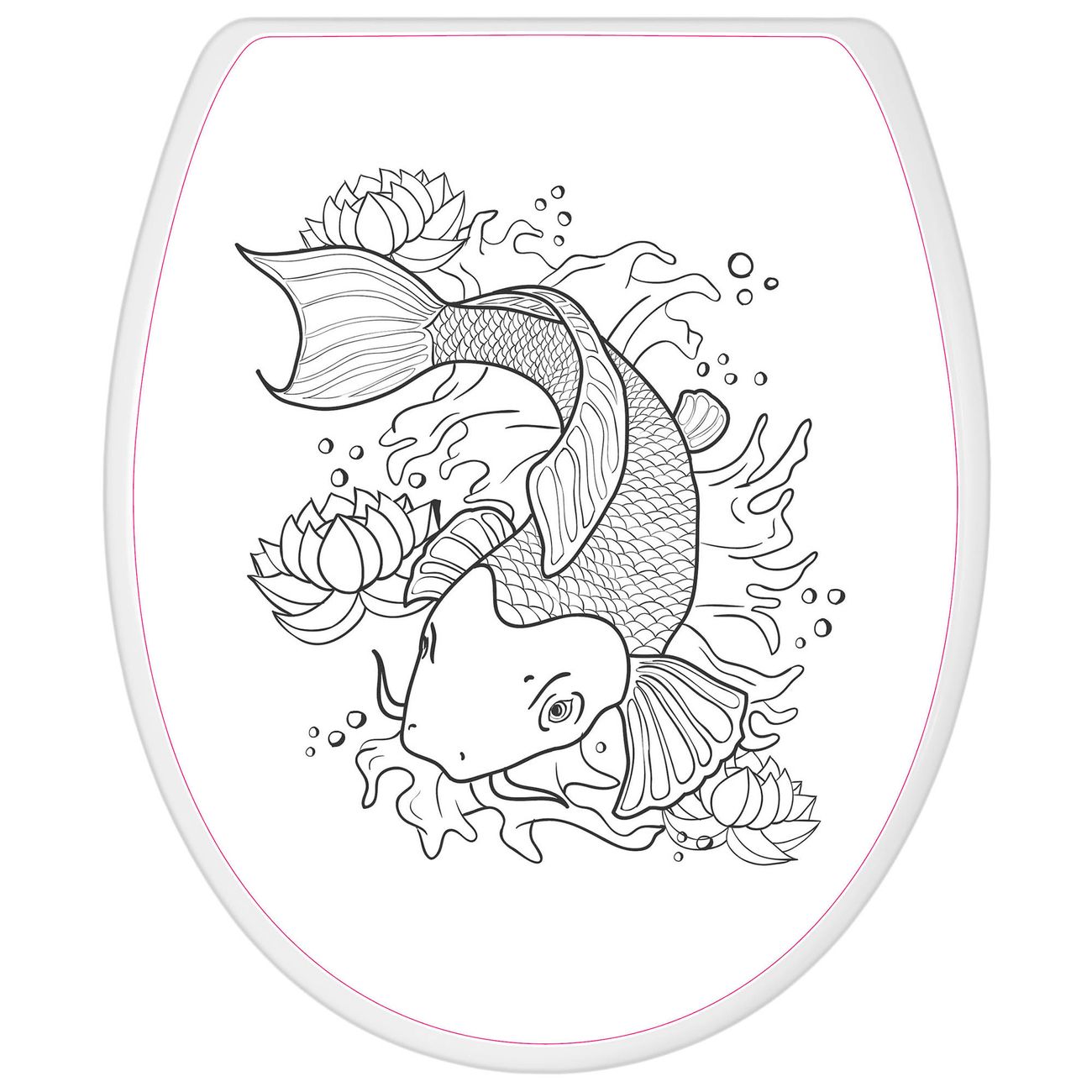 Toilettendeckel weiß mit Absenkautomatik Motiv Koi 2