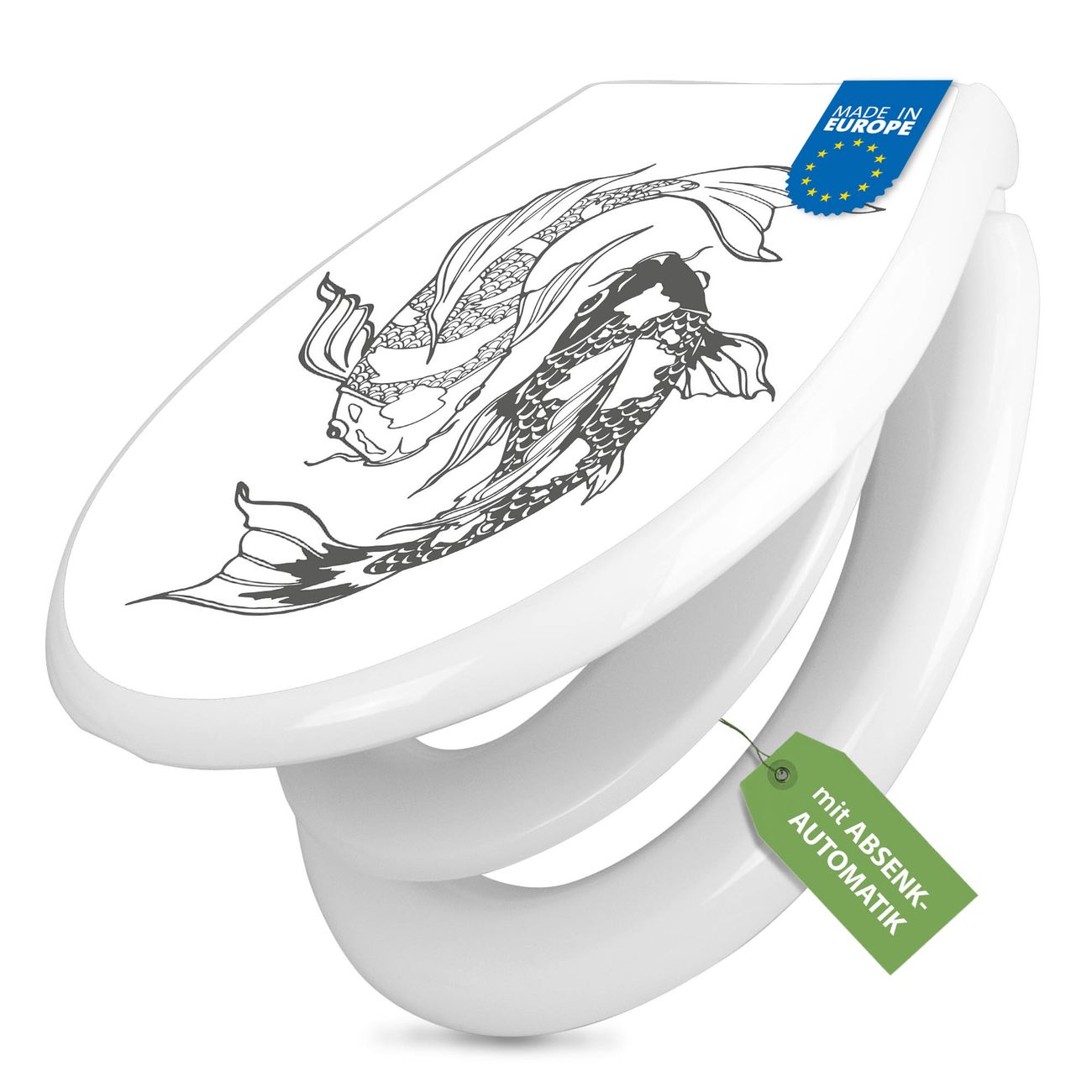 Toilettendeckel weiß mit Absenkautomatik Motiv Koi Paar 3