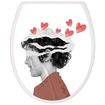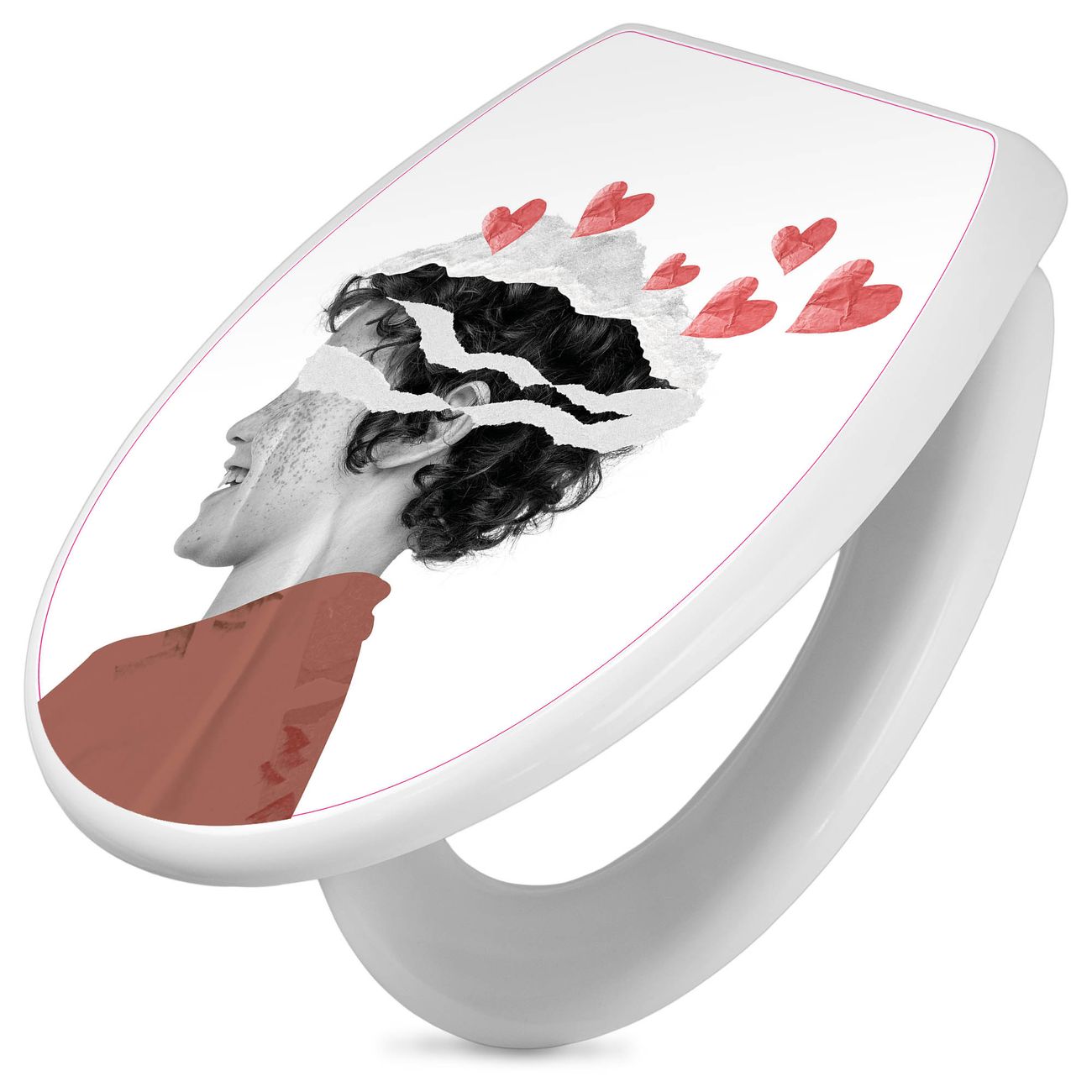 Toilettendeckel weiß mit Absenkautomatik Motiv Kopf in den Wolken Vintage