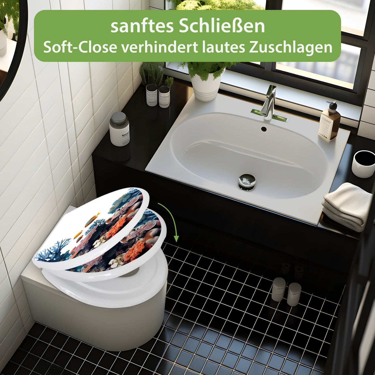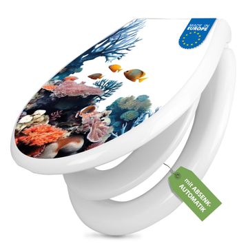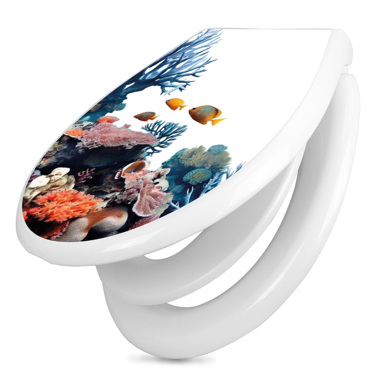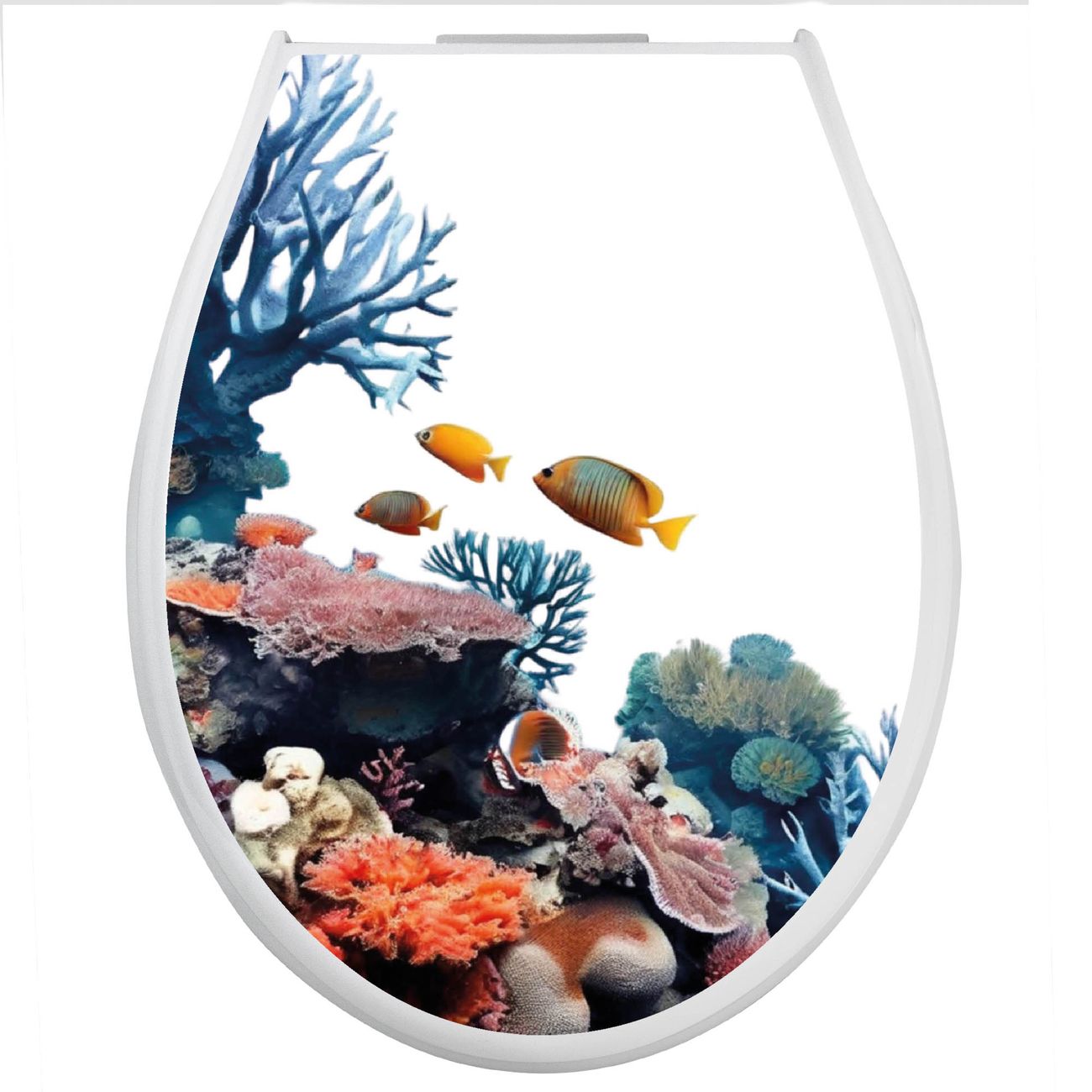 Toilettendeckel weiß mit Absenkautomatik Motiv Korallenriff und Fische