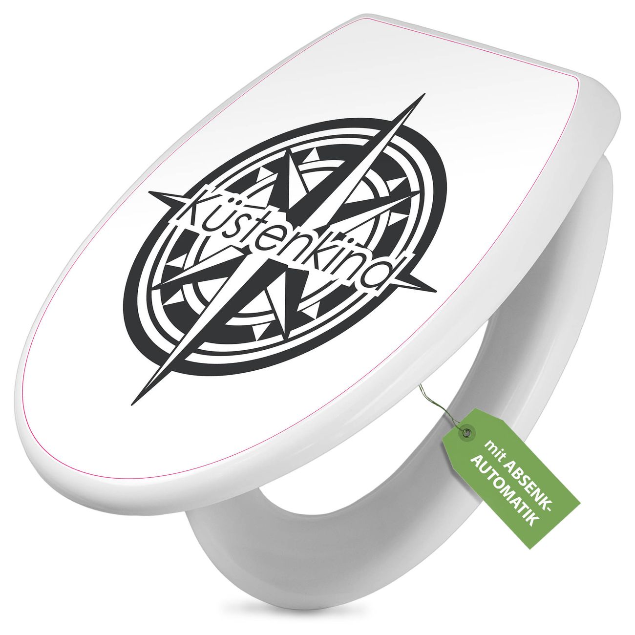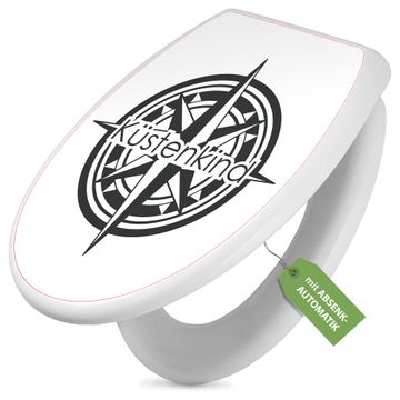 Toilettendeckel weiß mit Absenkautomatik Motiv Küstenkind Kompass 2