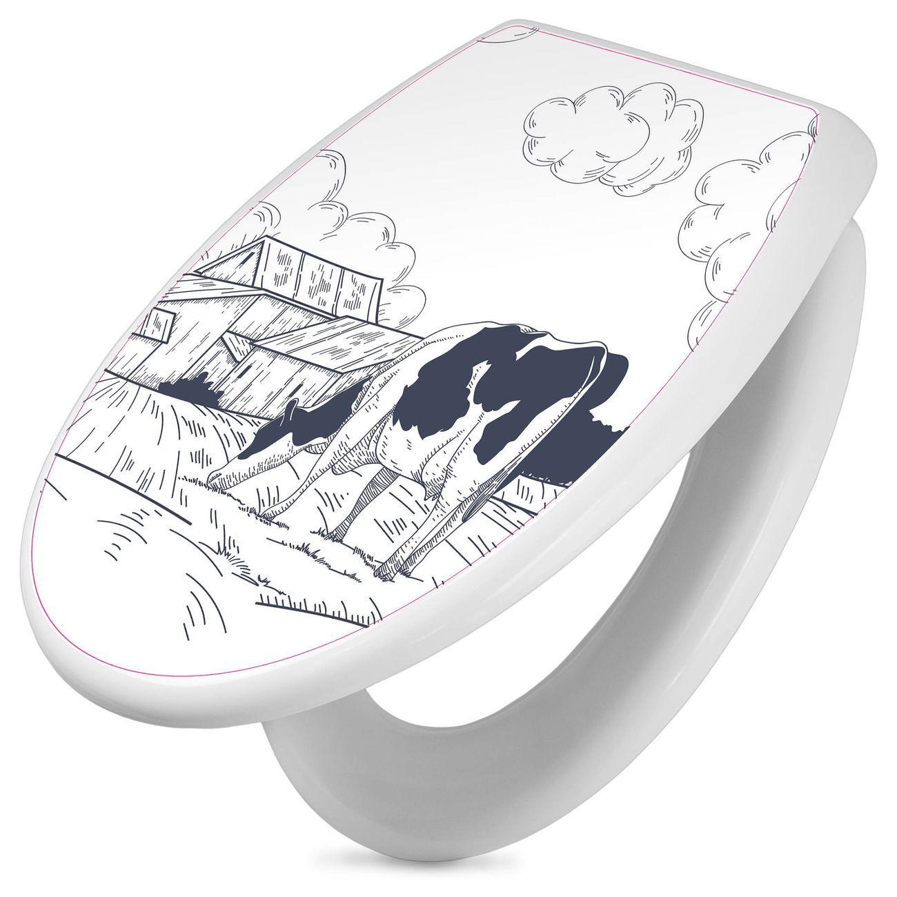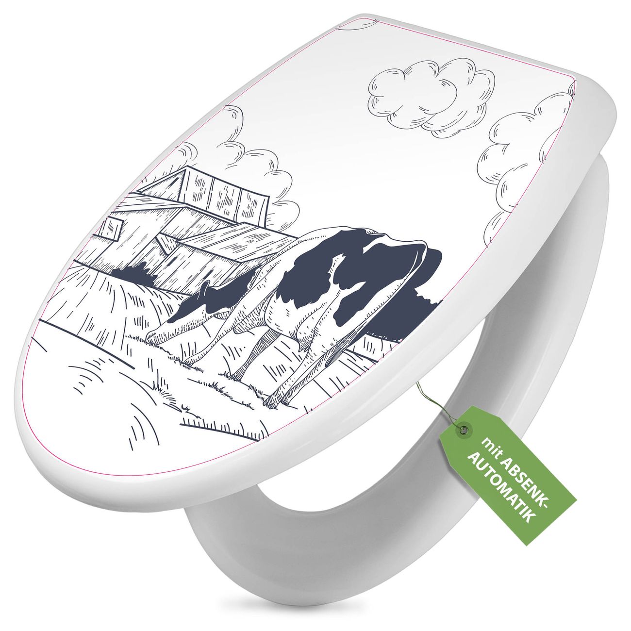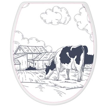Toilettendeckel weiß mit Absenkautomatik Motiv Ländliche Idylle mit Kuh