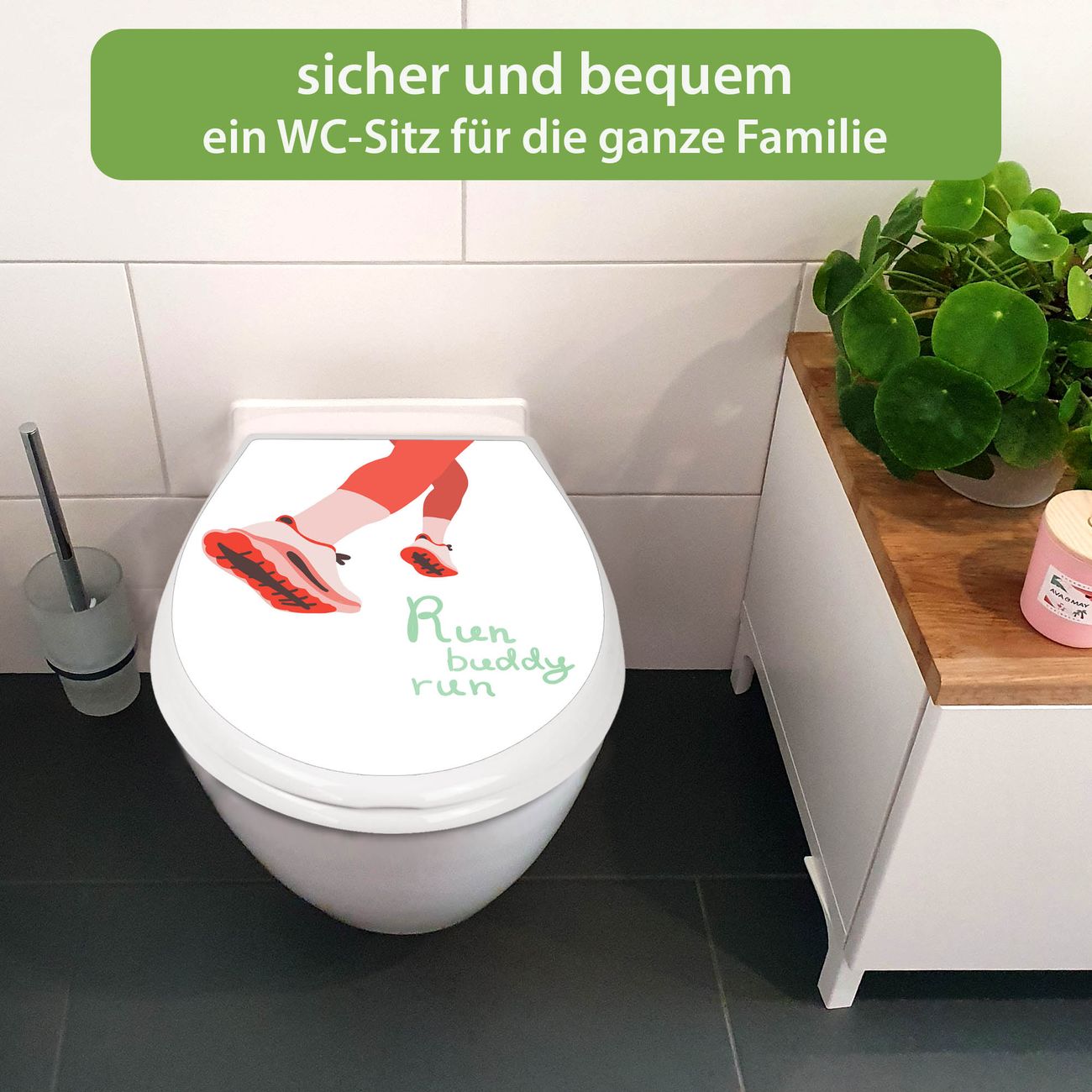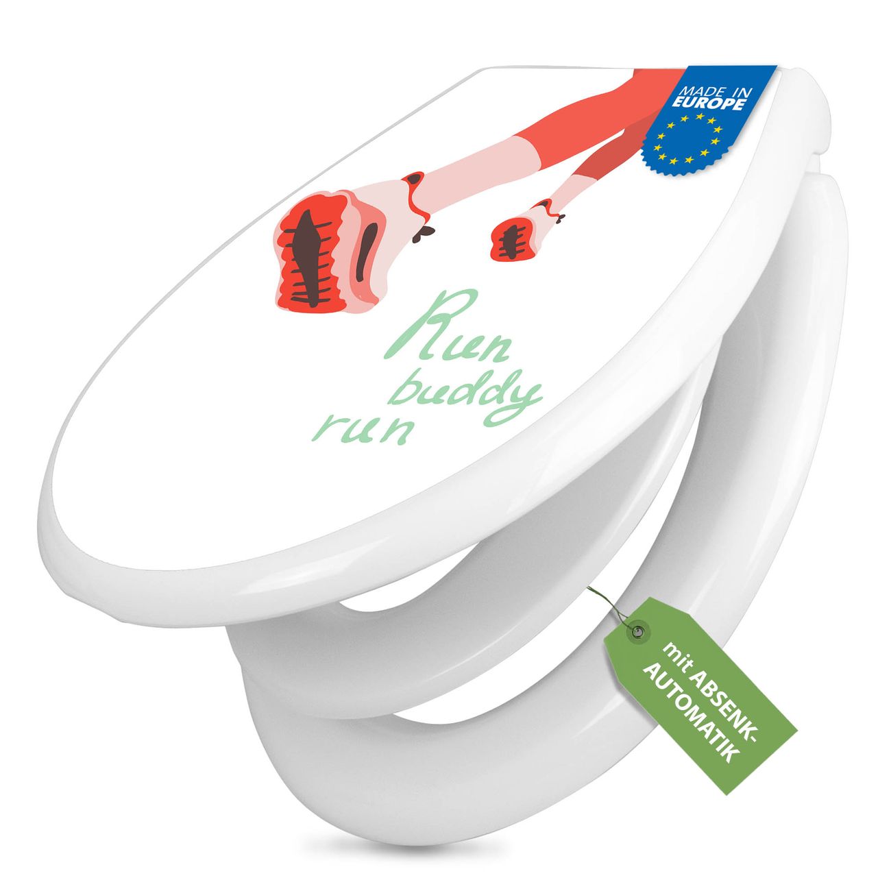 Toilettendeckel weiß mit Absenkautomatik Motiv Laufschuh Bewegung