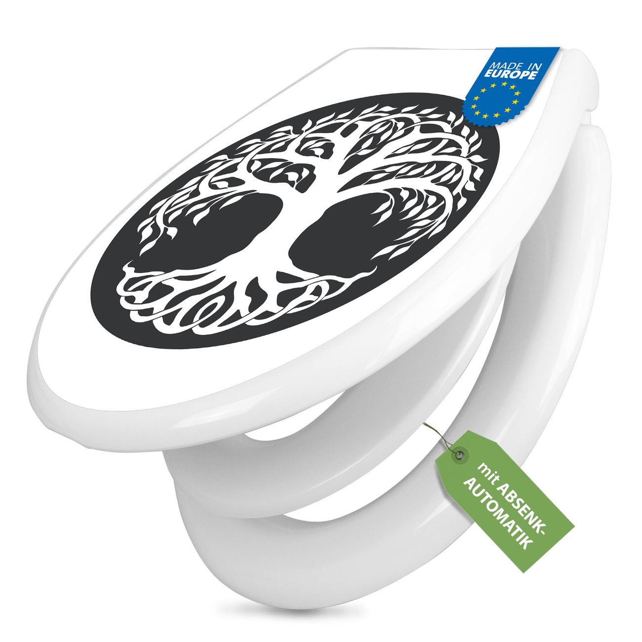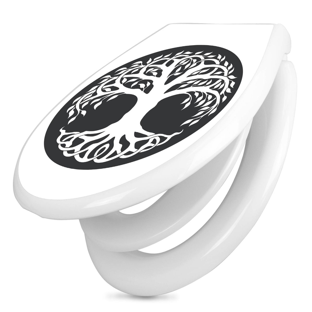 Toilettendeckel weiß mit Absenkautomatik Motiv Lebensbaum Silhouette