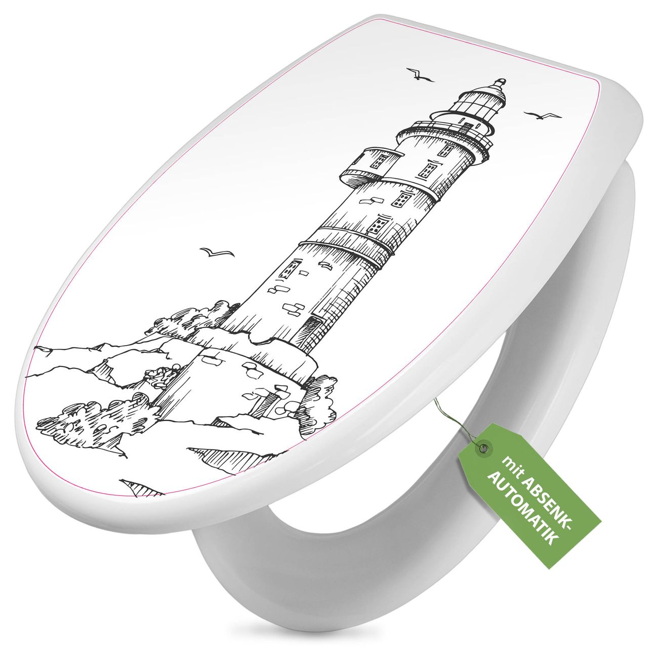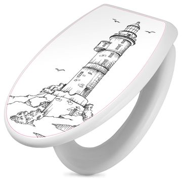 Toilettendeckel weiß mit Absenkautomatik Motiv Leuchtturm 6