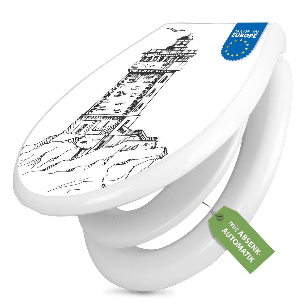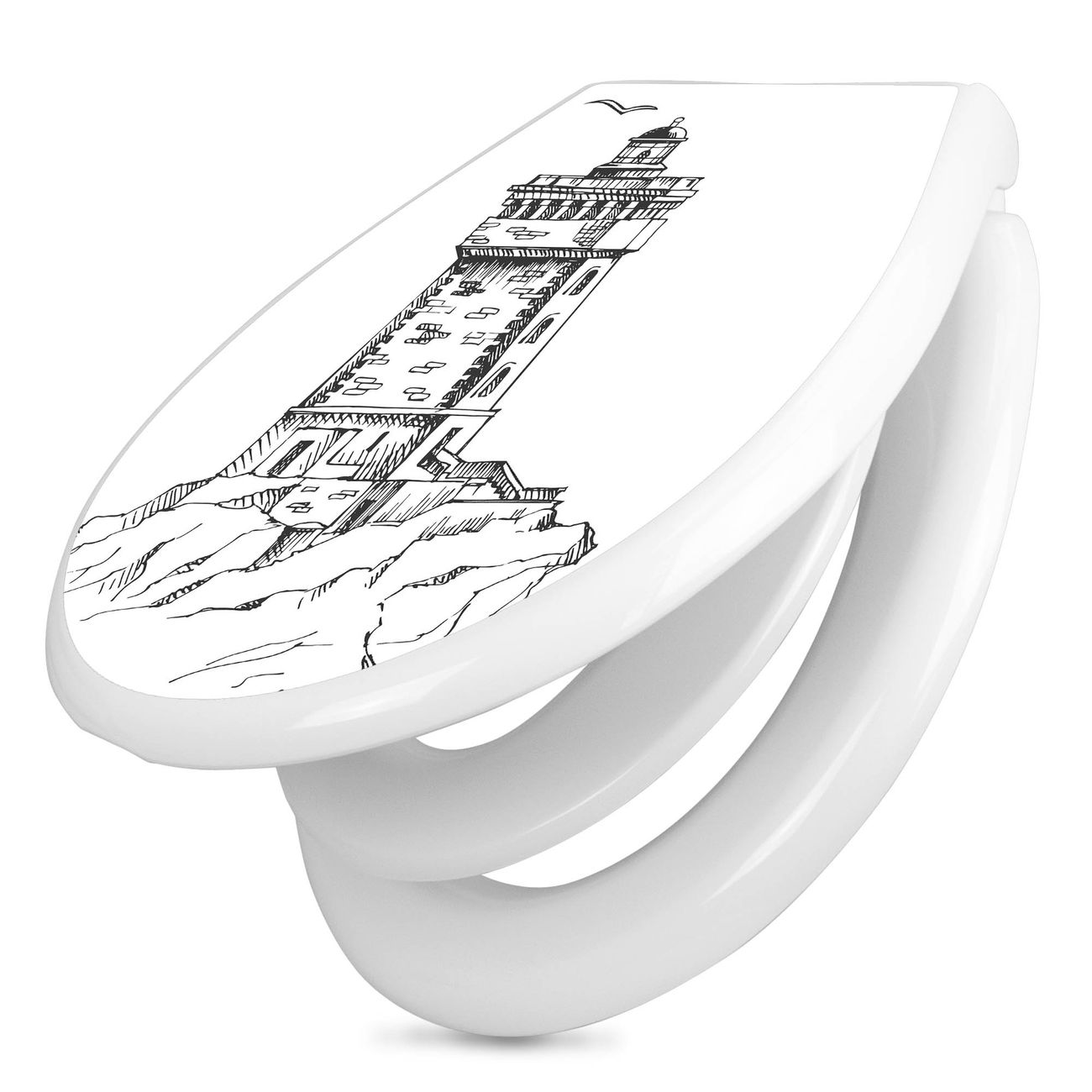 Toilettendeckel weiß mit Absenkautomatik Motiv Leuchtturm 8