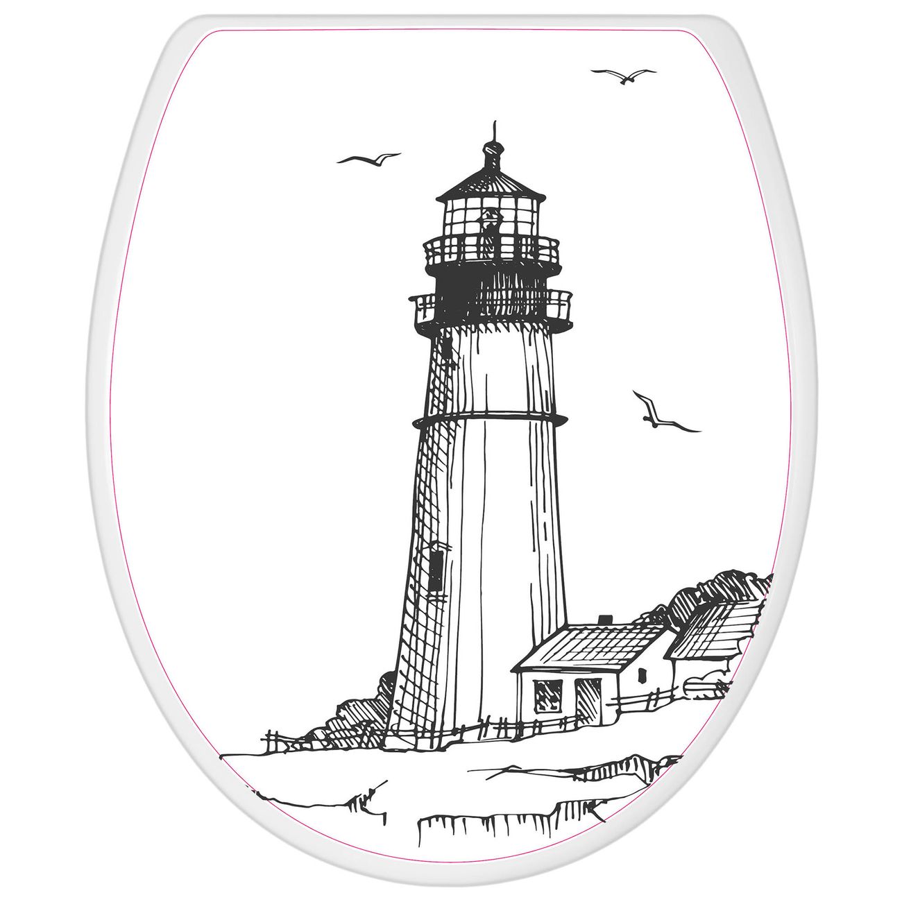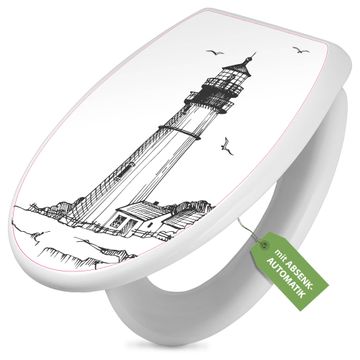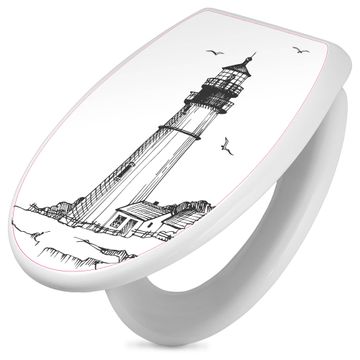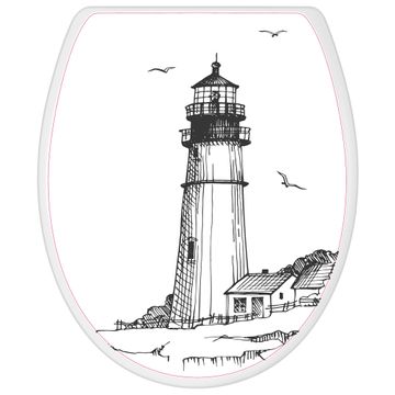 Toilettendeckel weiß mit Absenkautomatik Motiv Leuchtturm 9